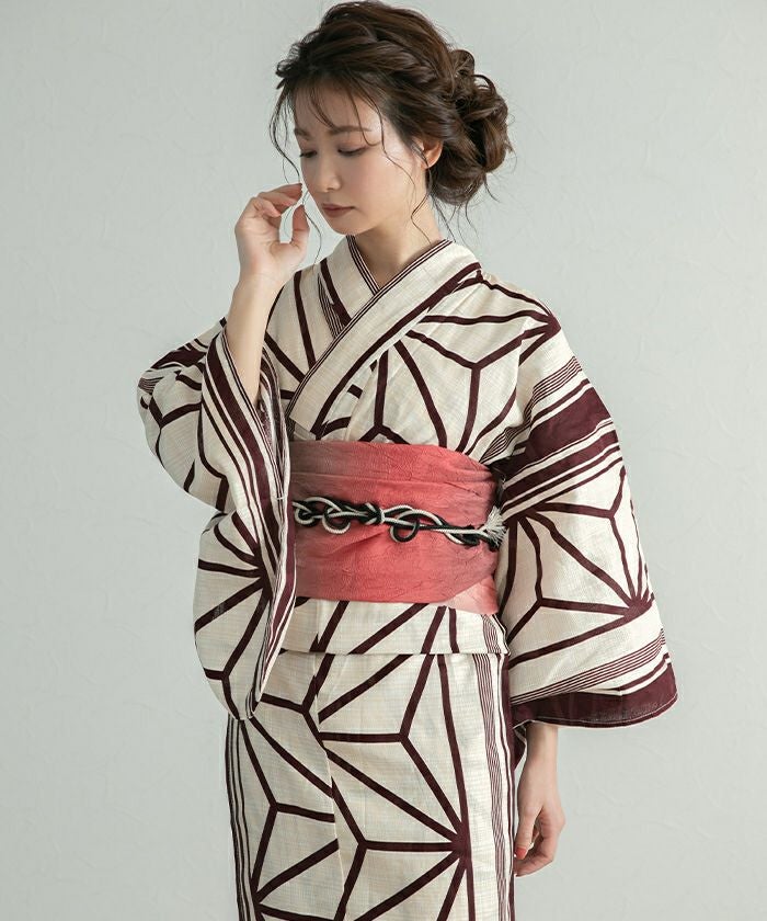 涼しさを保つため、生地は適度に薄く透け感があります。浴衣下にペチコート・キャミソール等のインナーの着用をおすすめします。