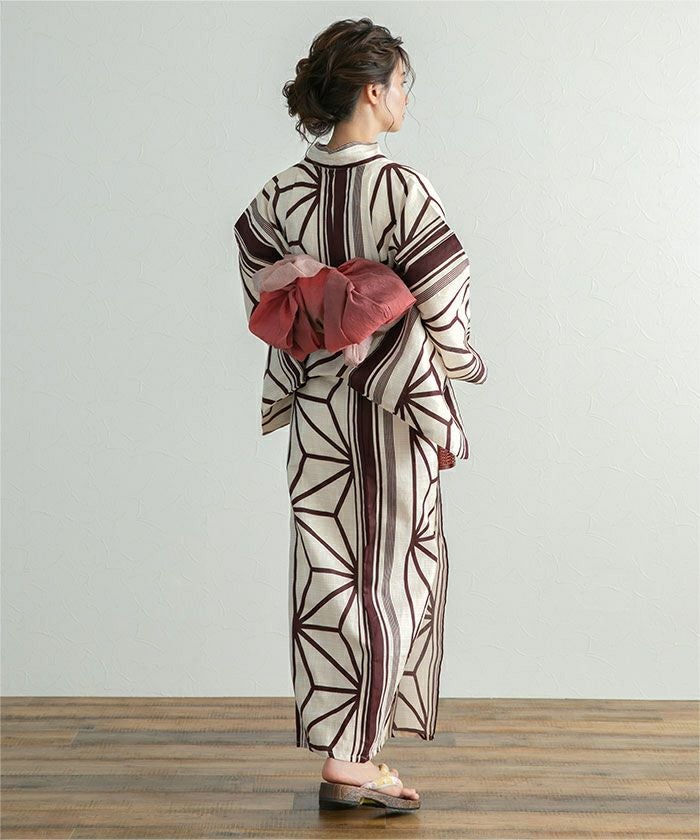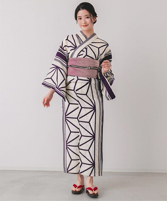 皺になりにくい「綿」の良さを活かした綿麻生地の仕立て上がりの古典柄浴衣です。