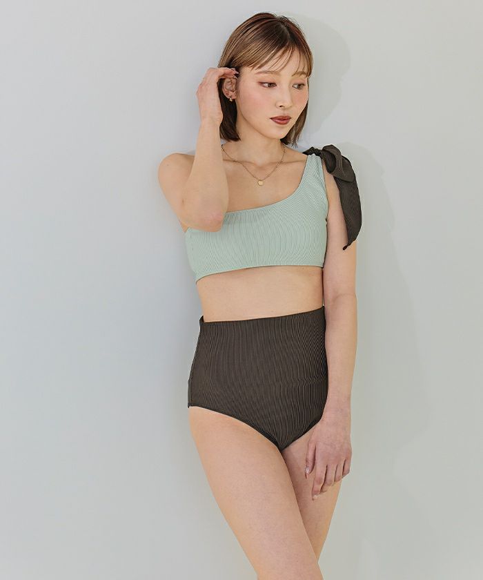 ワンショルダーデザインリブビキニ/水着【メール便可/100】