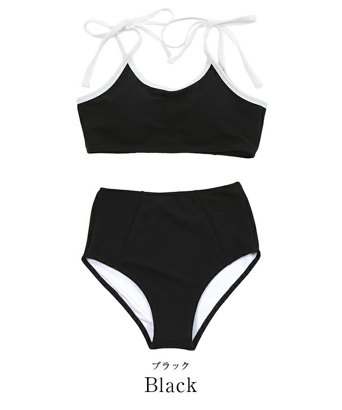 ・ショルダーリボンのバイカラーがポイントのハイウエストビキニ。