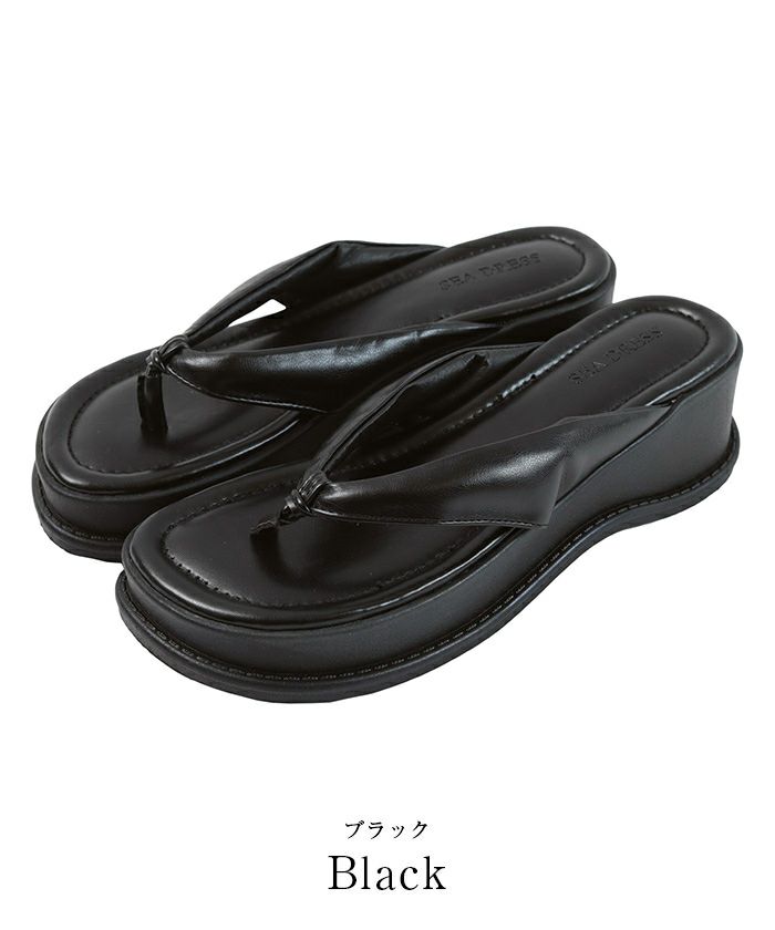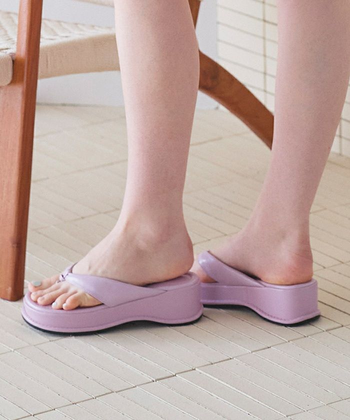 ・サイドが幅広になっているデザインのトング型厚底サンダル。