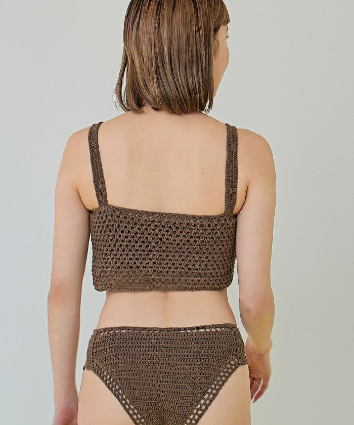 ・大人シンプルデザインのスクエアネッククロシェニットビキニ。