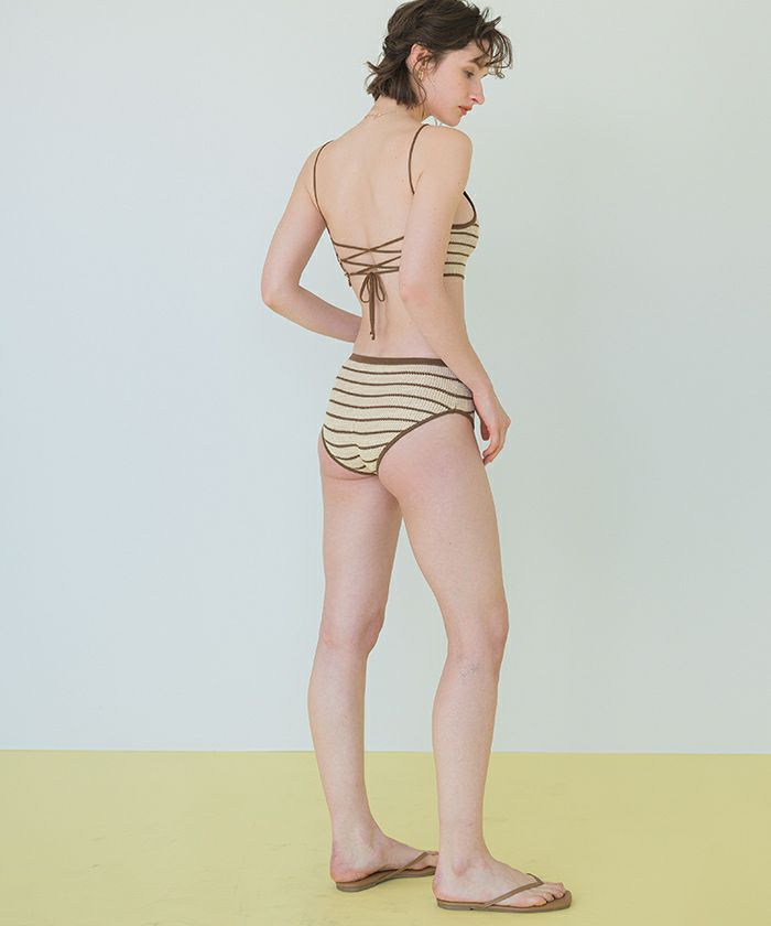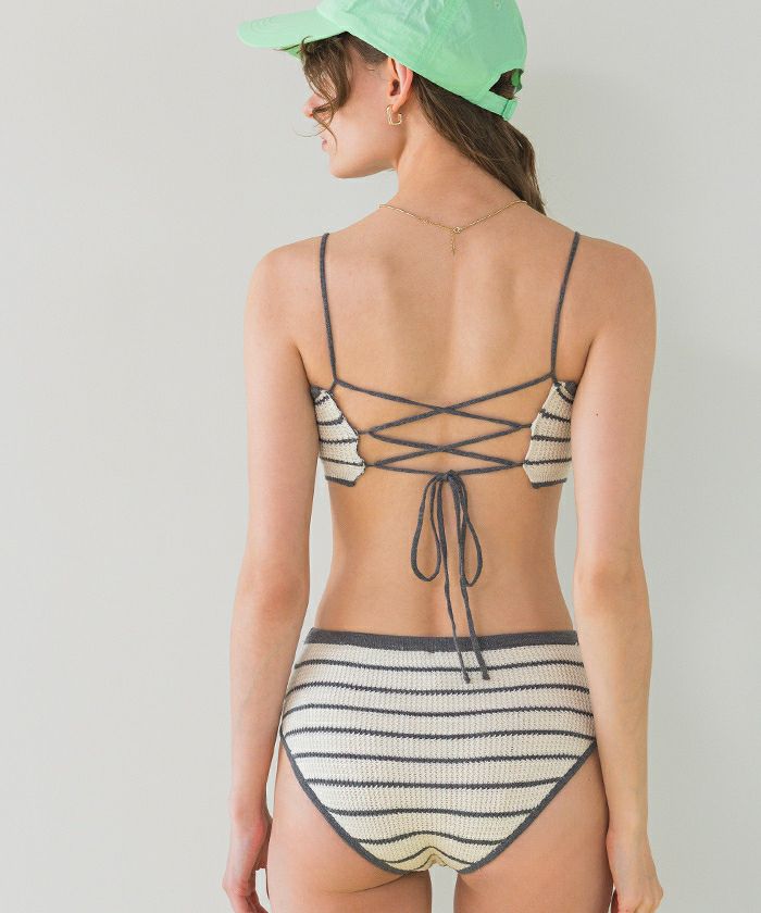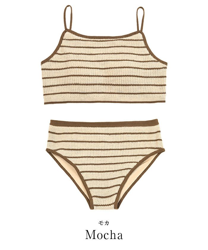 ・編み柄にこだわった夏らしい細ボーダーニット水着。