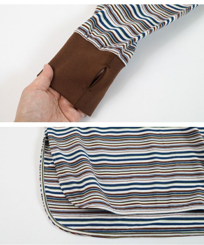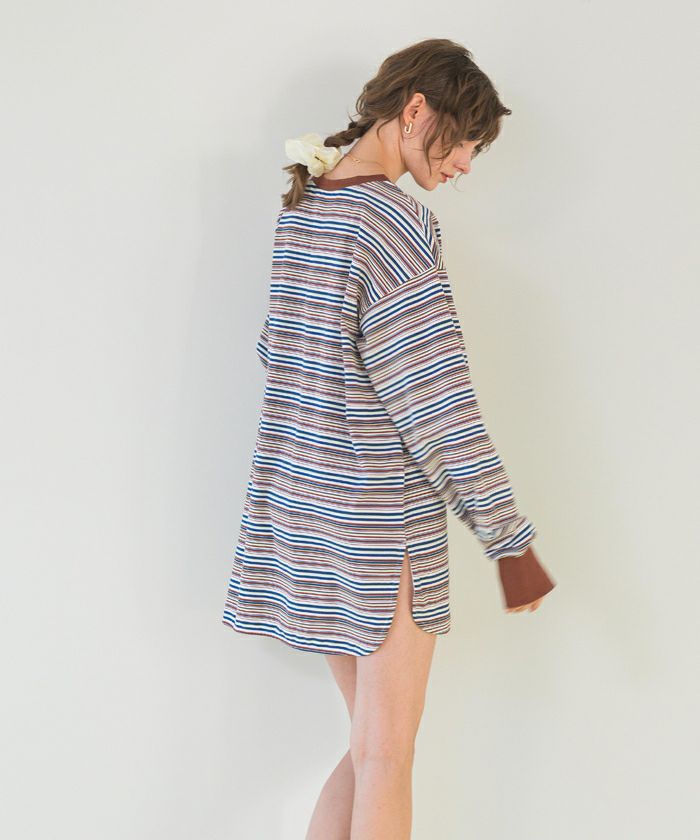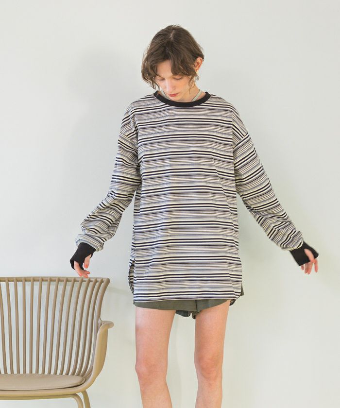 ・目を惹く細かなマルチボーダーがカジュアルなスタイリングを叶えます。