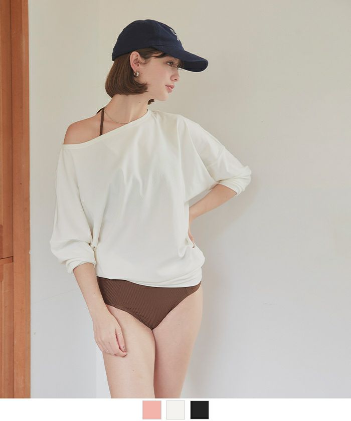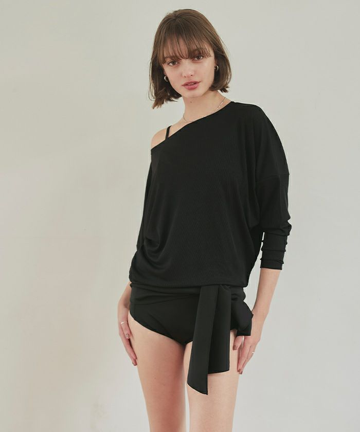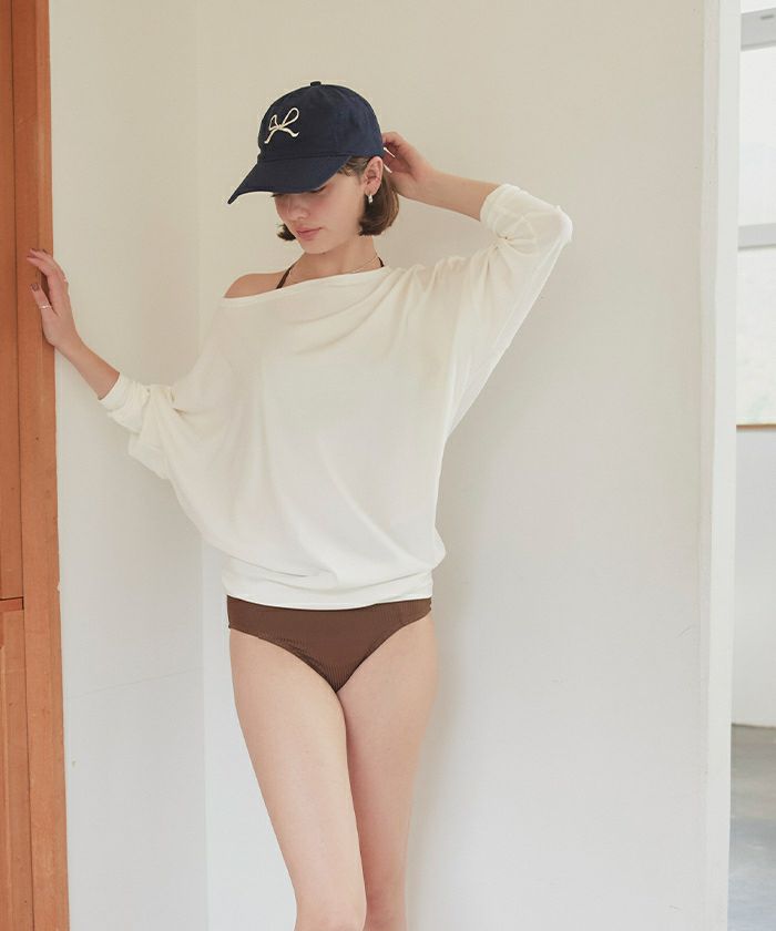 速乾性のあるリブ素材で、ビーチだけでなくヨガやピラティス、サウナなど様々なシーンで活躍。