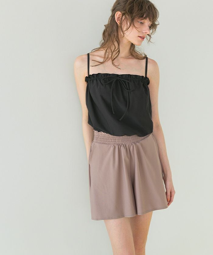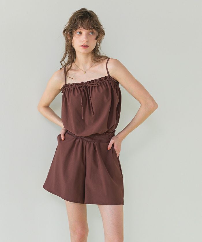 ・トップ部分はゆったりとしたブラウジングデザインで、お腹周りをナチュラルにカバーしながらスタイルアップとフェミニンな雰囲気をプラス。