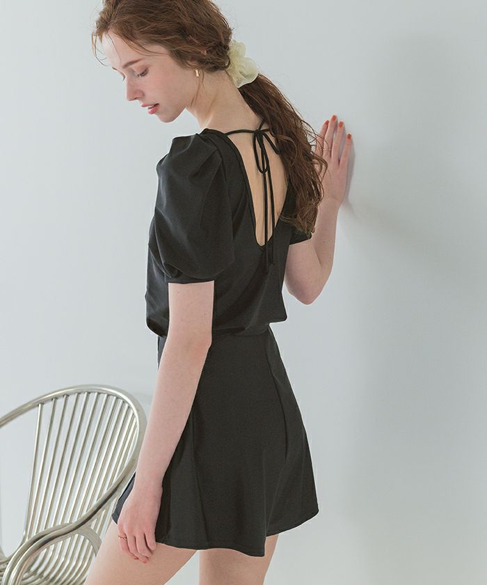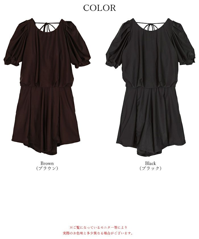 ・大人可愛いパフスリーブ×メリハリのあるシルエットでおしゃれにカバーアップできるワンピース水着。