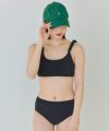 ・ビーチ映えする柔らかなパイル素材がポイントのショルダーギャザーデザインビキニ。