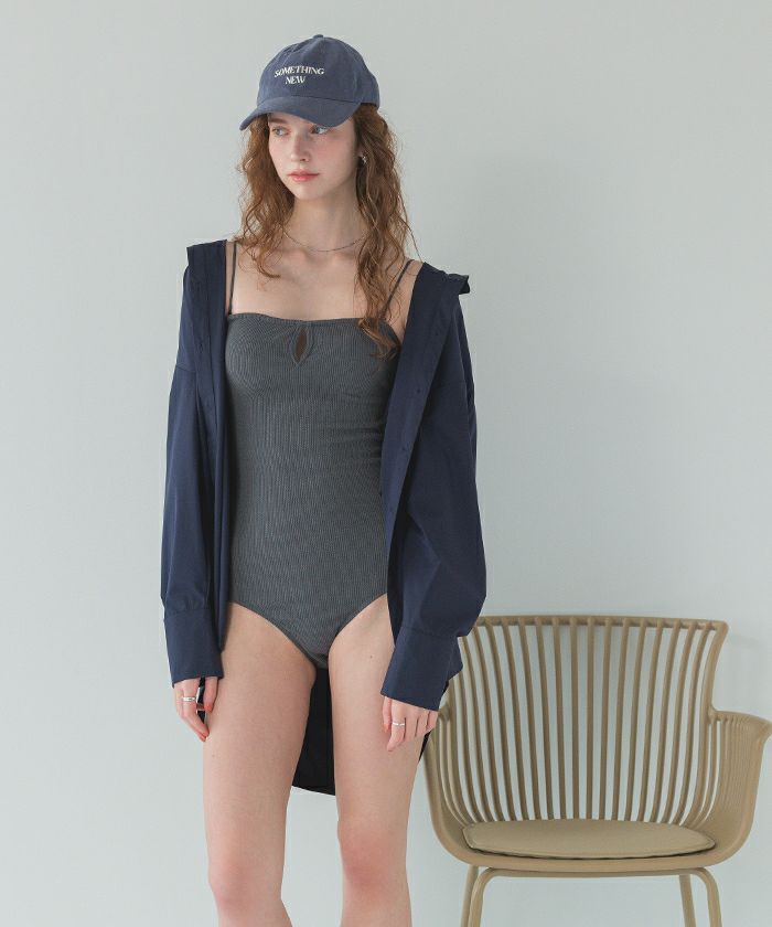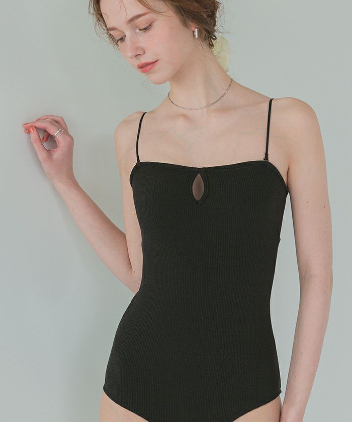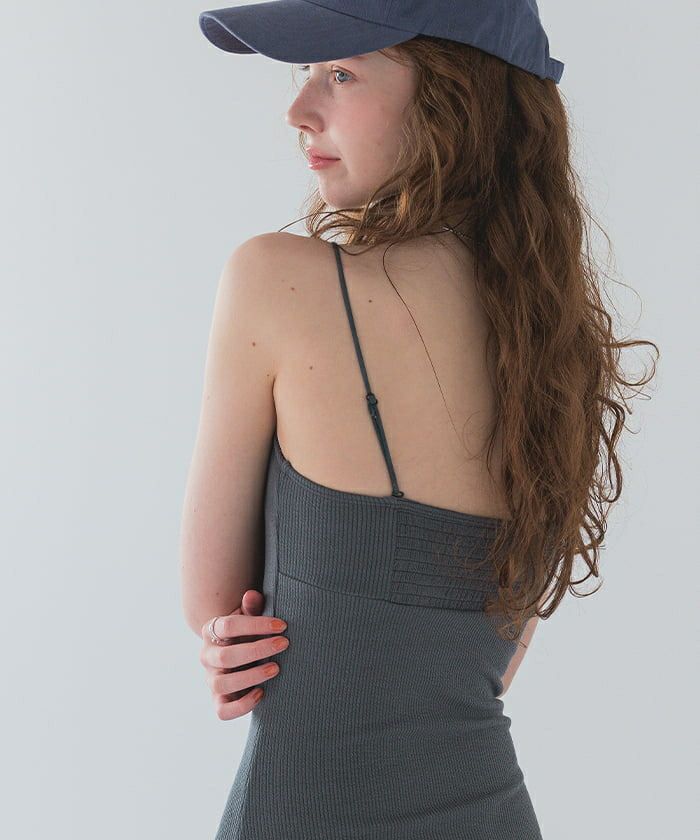 ・ナローストラップの肩紐や控えめのフロントホールデザインで大人のリゾート感を演出◎