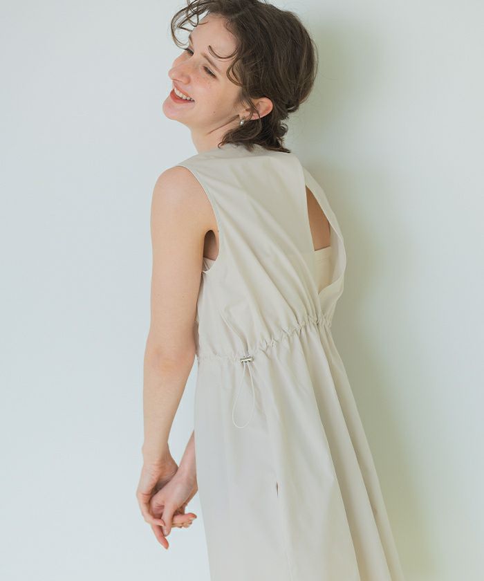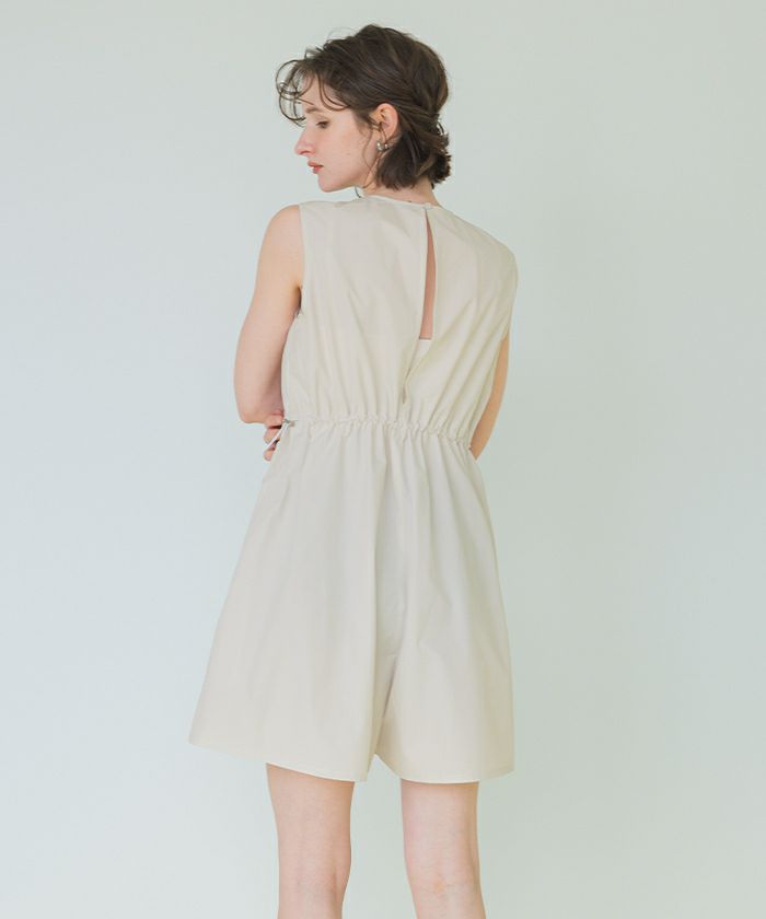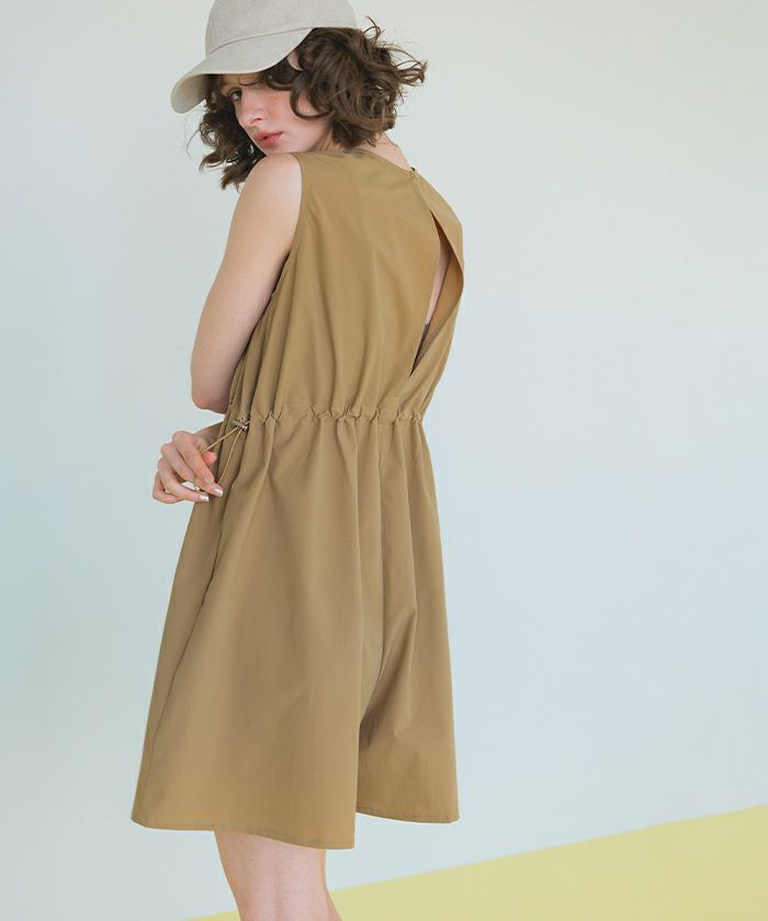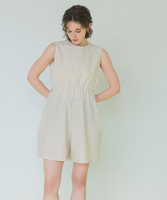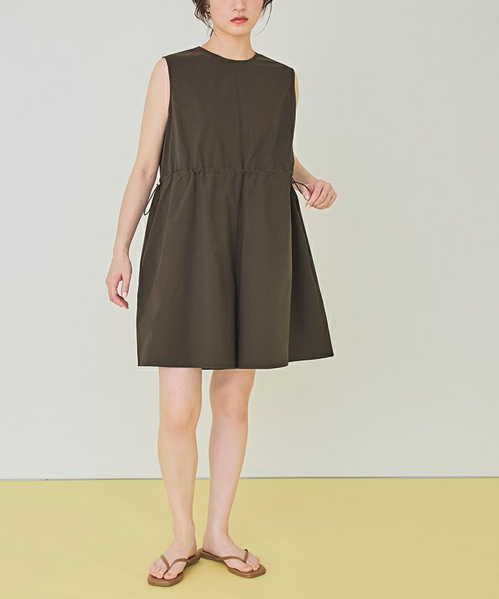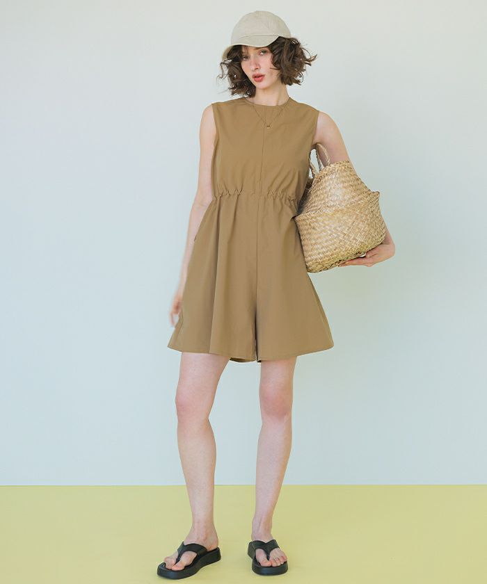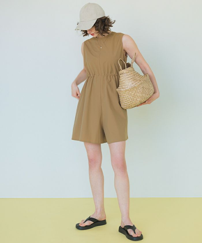 ・ハリ感のある撥水素材のノースリーブロンパースラッシュガード。