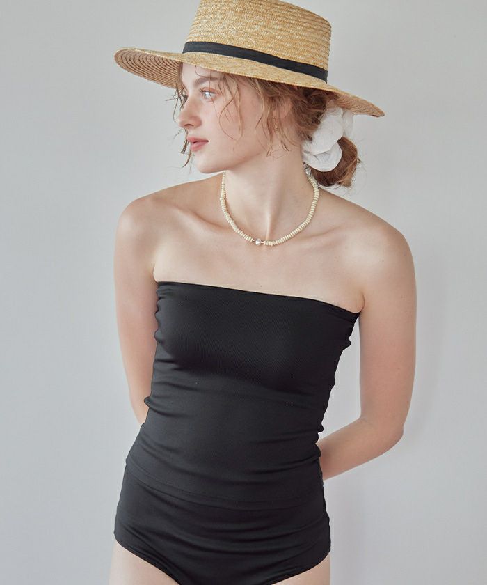 ・インナーはセパレートデザインなのにワンピース見えが叶うマルチway細リブ素材ビキニです。