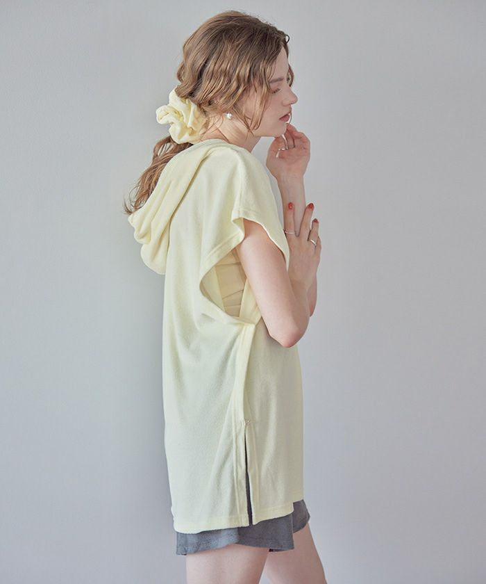 細かいパイル素材を使用している為、裁ち目から細かな繊維が出てくることがございます。繰り返しのお洗濯で解消されますので、予めご了承ください。