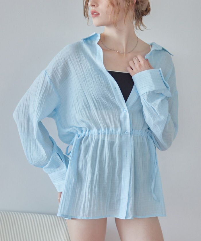 ・ウエストが絞れてスタイルカバーできるロングシャツ。