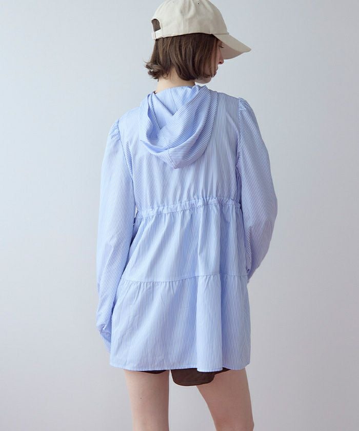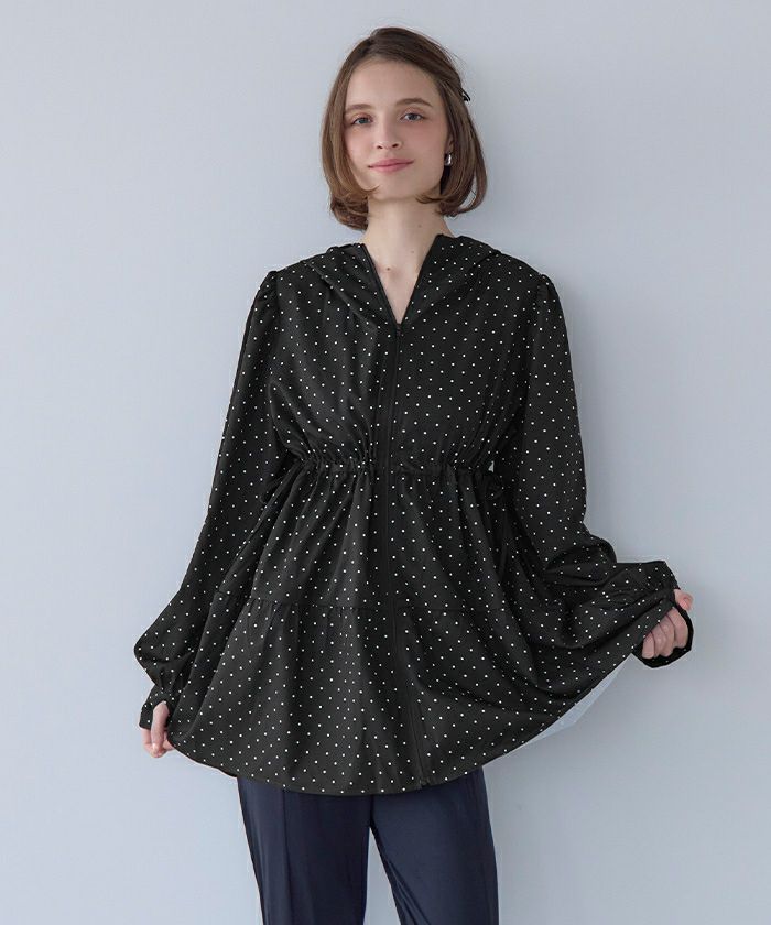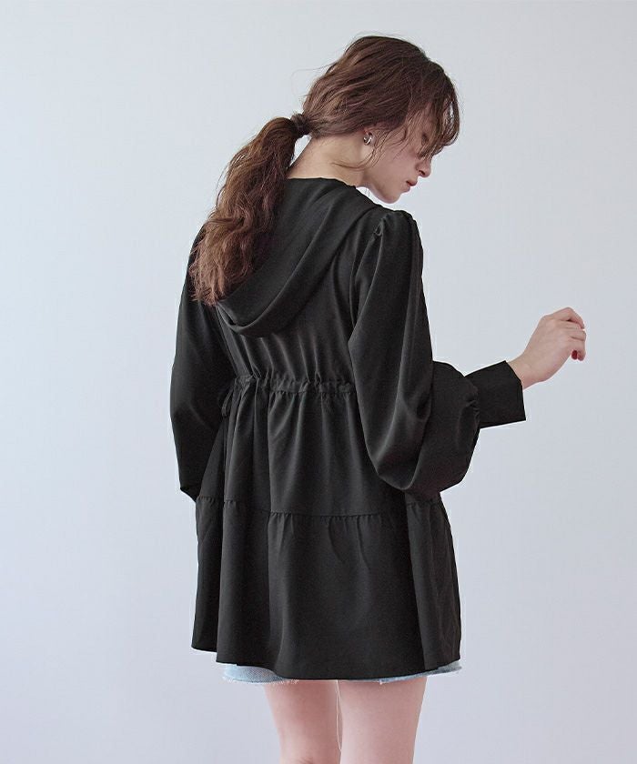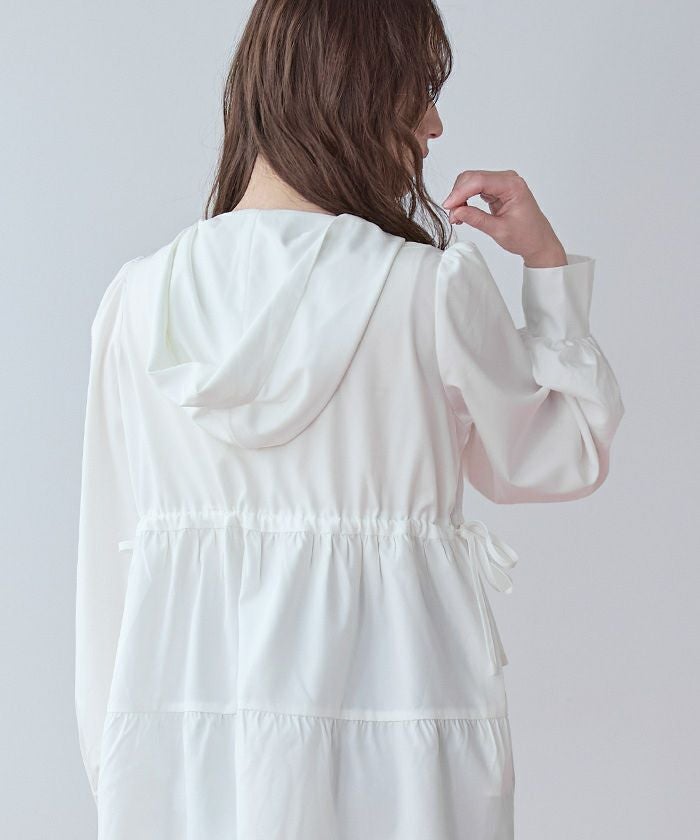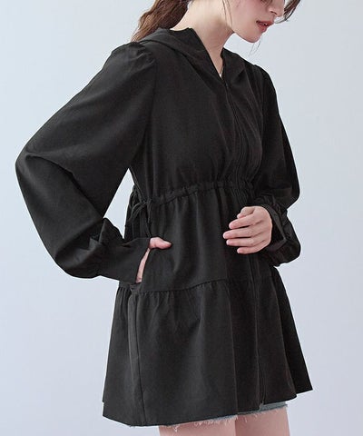 ・ティアードシルエットが可愛らしいフード付きジップパーカーラッシュガード。