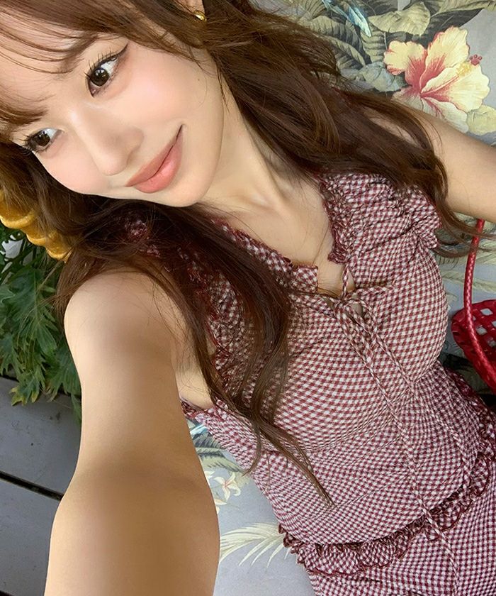 ・胸元のリボンと小さめの涙開きで、気取りすぎない“ちょうどいい可愛さ”をプラスしています。
