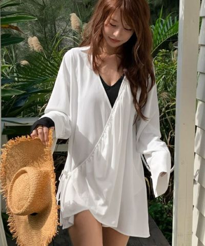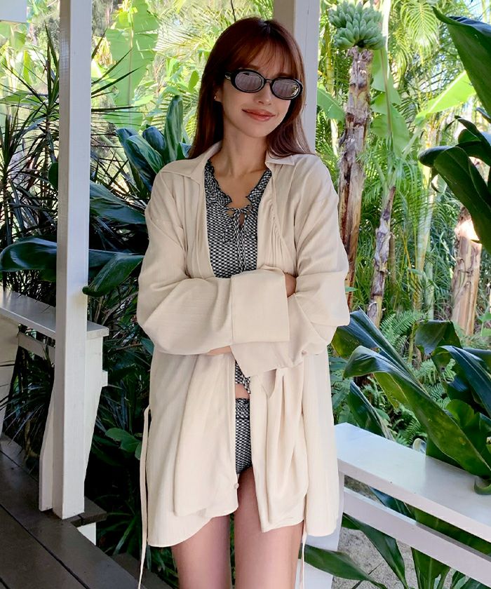 ・スイムウェアの上からはもちろん、タンクトップ×ショートパンツに羽織ってリゾート感を出したり、デニム合わせでカジュアルにまとめたりと着回し力抜群です。