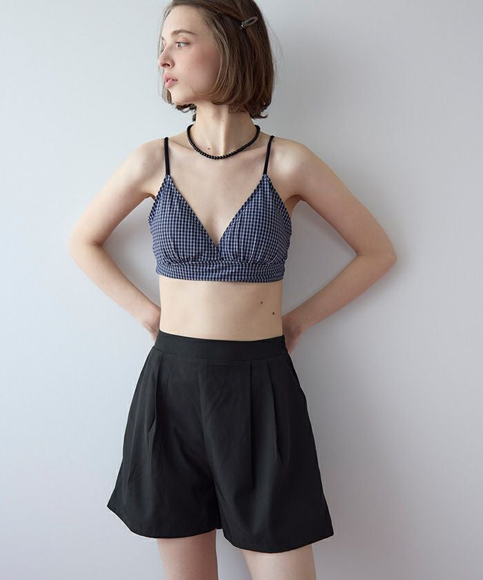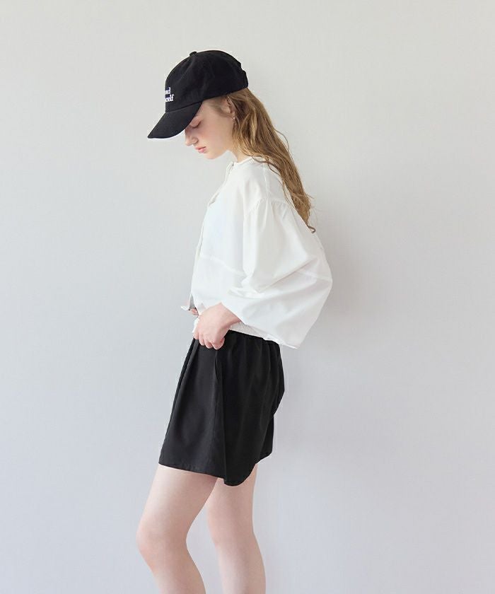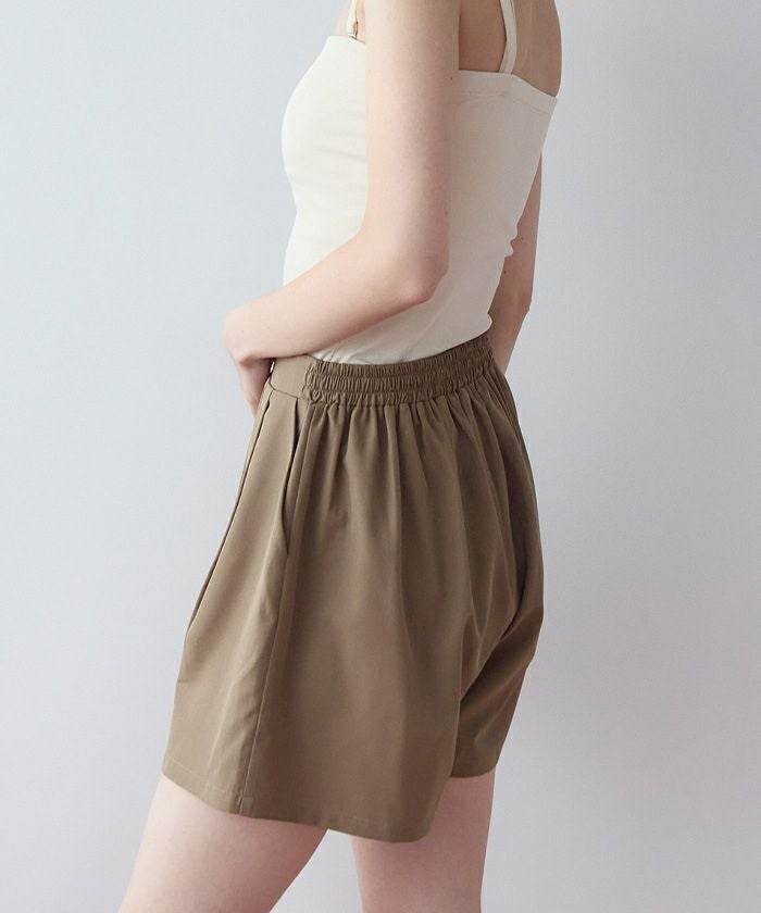 ・ショートパンツはタック入りで脚まわりがきれいに見えるシルエットに。