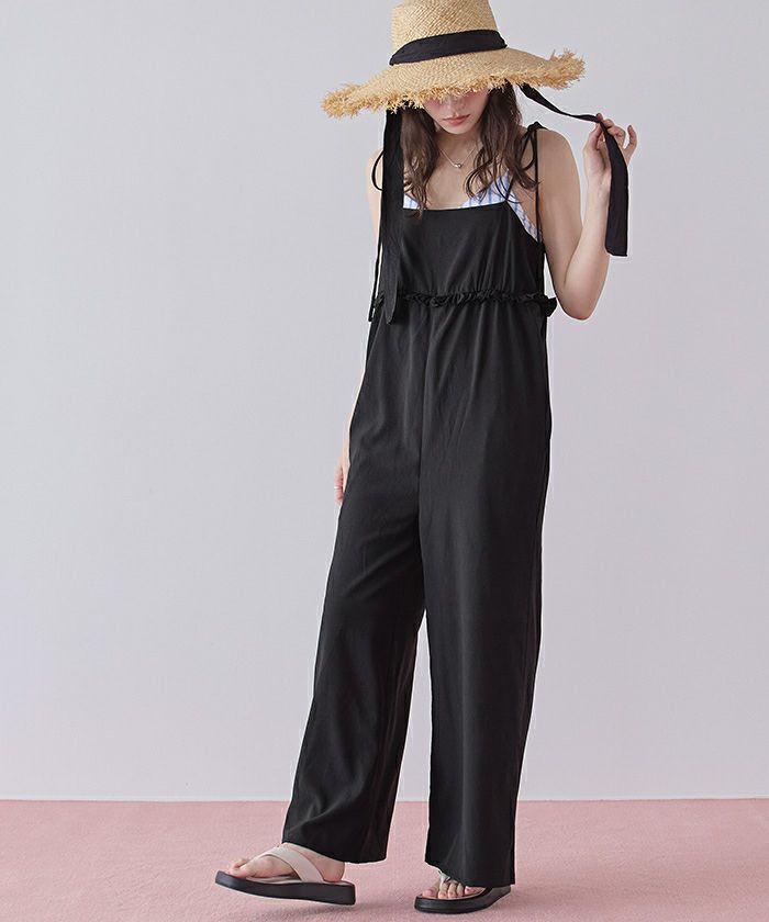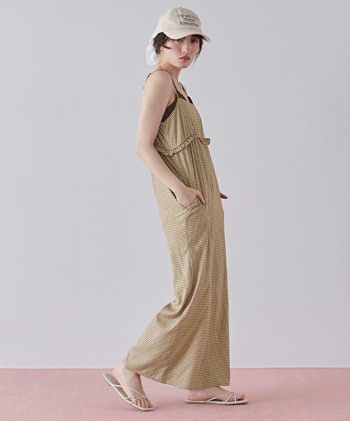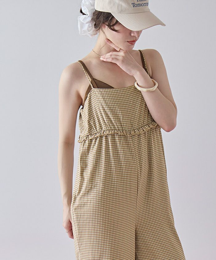 ・胸下のミニフリルがポイントになったキャミソールオールインワン。