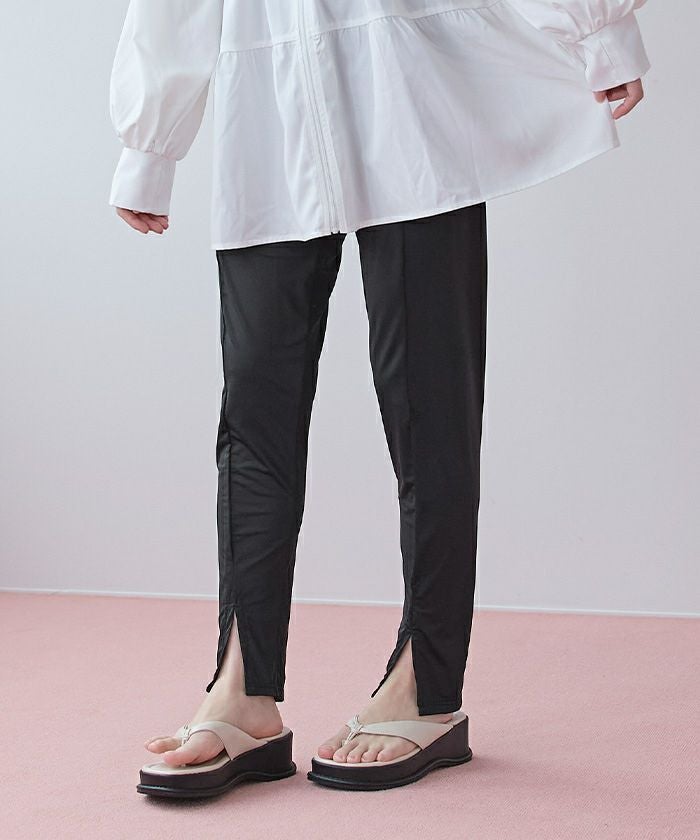 ・脚をすっきりと見せてくれるセンタースリットデザインのレギンス。