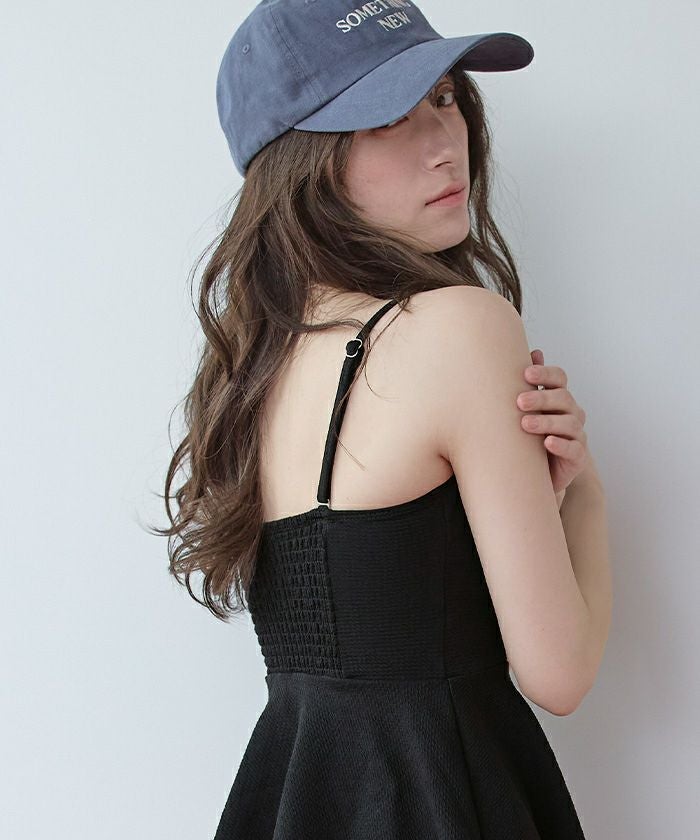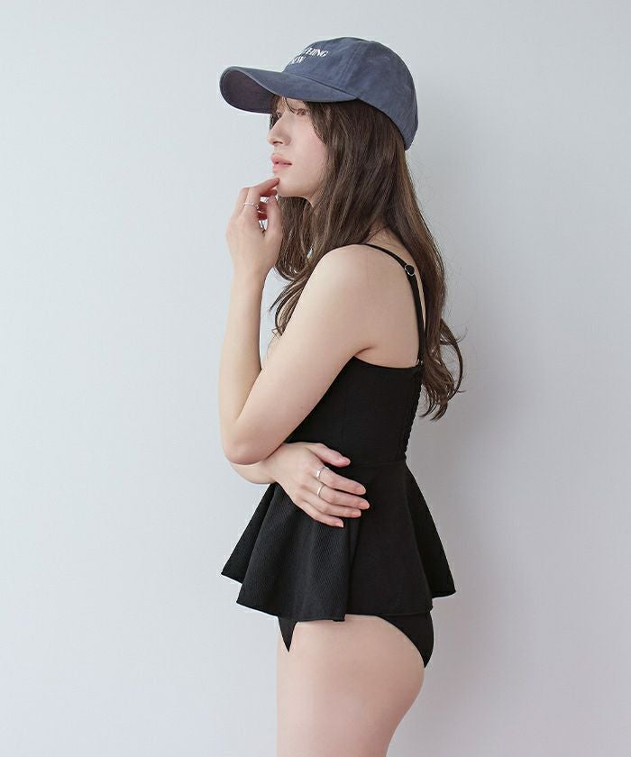 ・表面変化のある素材を使用したペプラムタイプのフレアビキニ。