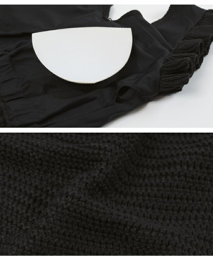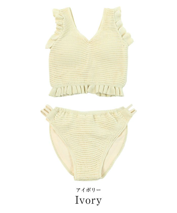 ・リゾート感のある編みの風合いが大人可愛いバックレースアップデザインニットビキニ。