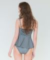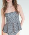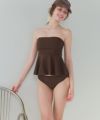 ・表面変化のある素材を使用したペプラムタイプのフレアビキニ。