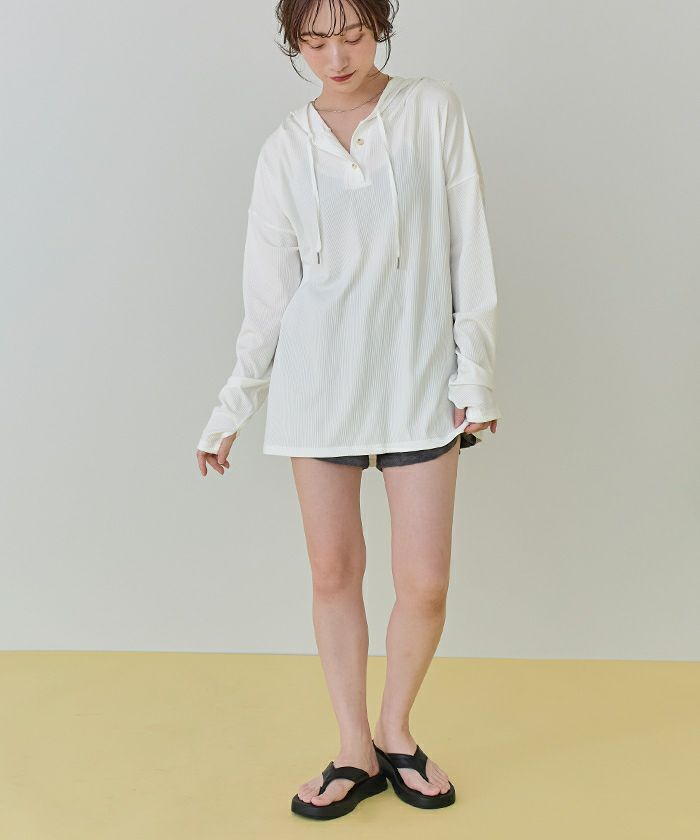 ・速乾性のあるリブ素材で、ビーチだけでなくフェスやレジャーシーンのトップスとしても大活躍な1着です。