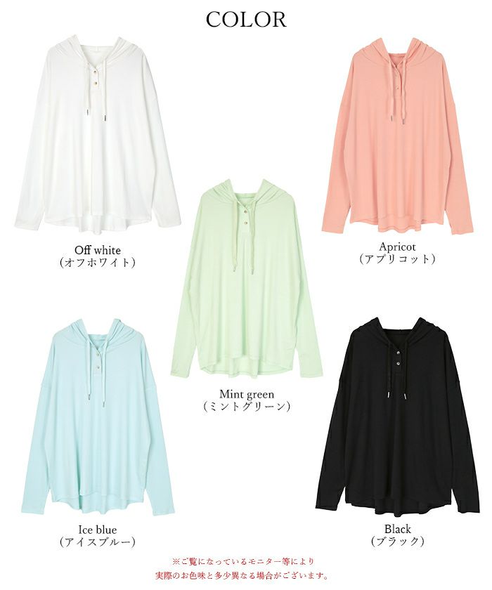 アプリコットンのお色を購入しました。 お写真と同じ色でとても可愛いです! 159cmでお尻が隠れ、ゆとりもあるのでパッと着替えもできて良さそうです。 生地はさらさらとしていますし、軽いのでとっても着やすいです。またプールや海では荷物が多いので軽いのはとっても助からなぁと思いました。