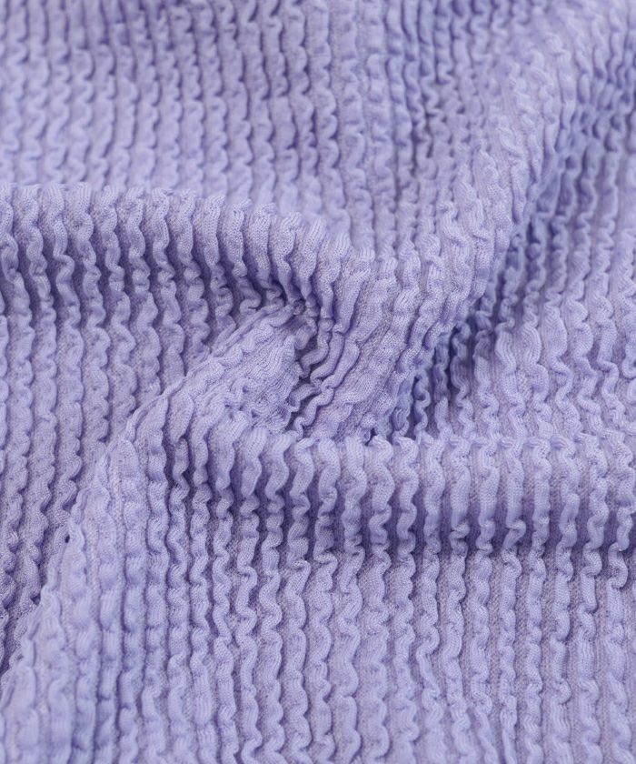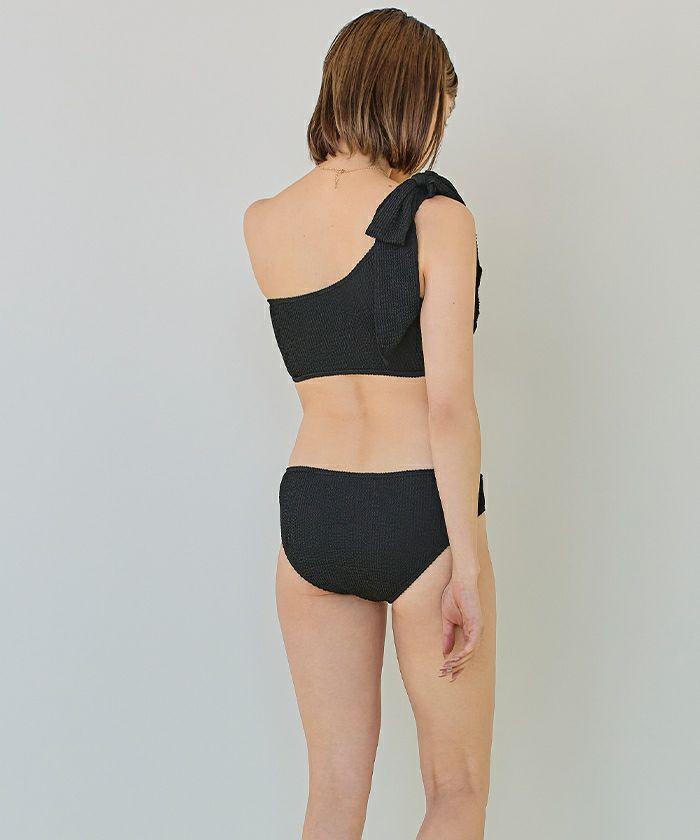 ・立体感のある波カット素材で抜け感のある着こなしを叶えるワンショルダーデザインビキニ。