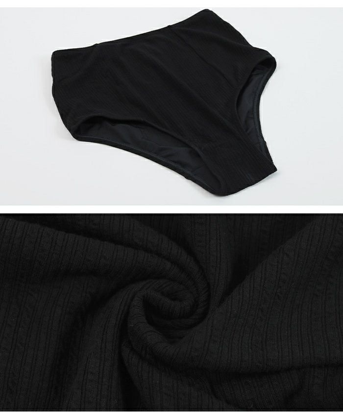 伸縮性が良く柔らかい風合いで着水可能なウォッシャブルレーヨンのリ・ブ素材を使用。
