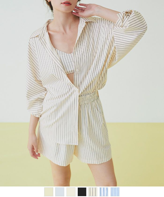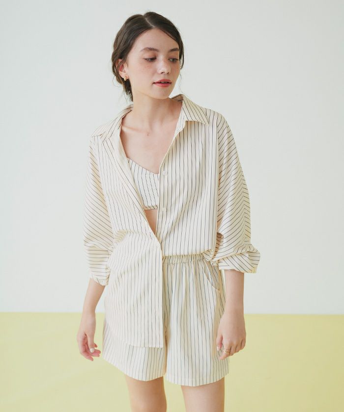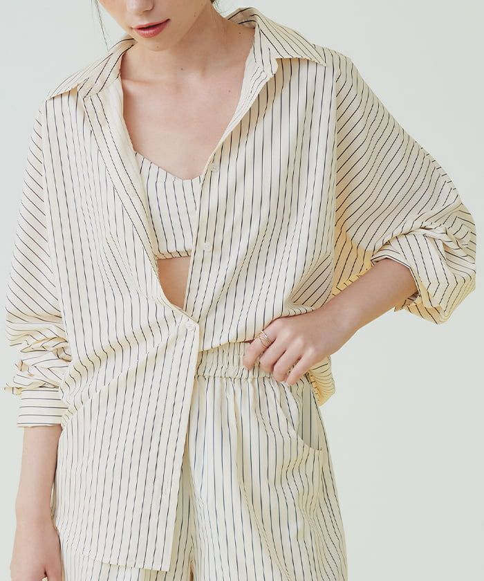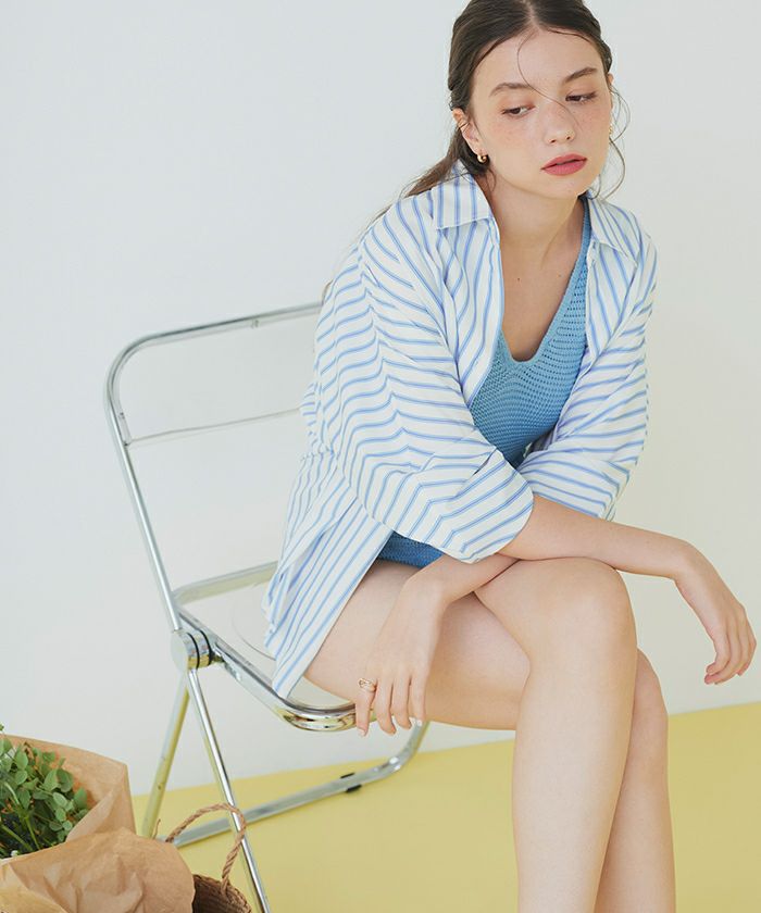 着用 / サイズ:F カラー:ストライプ/チャコール、ストライプ/ブルー、ストライプ/ホワイト、オフホワイト、アイボリー