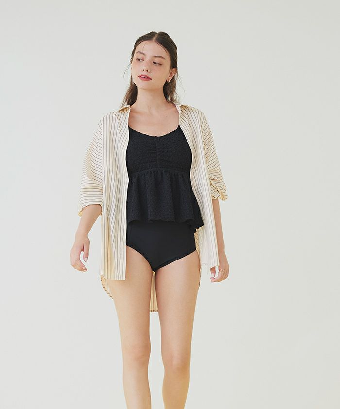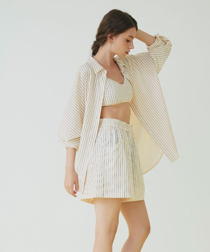 同じストライプ柄の商品展開もあるので、一緒にコーディネートできるラッシュガードシャツです◎