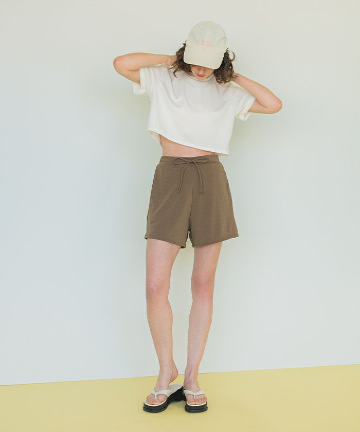 ・ショートパンツはウエスト紐で調節できる上にバックゴム仕様なので着脱も簡単&嬉しいポケット付き。