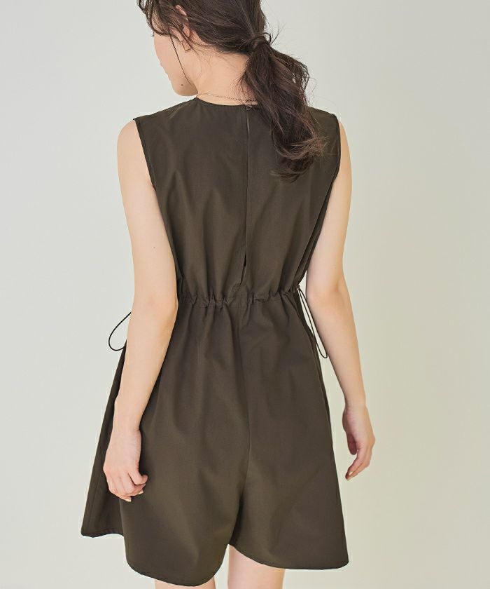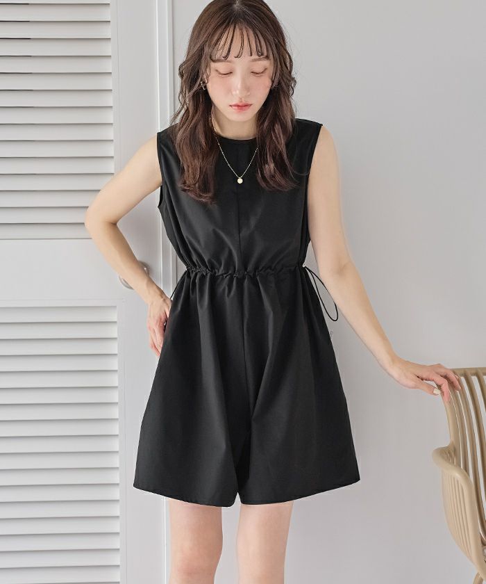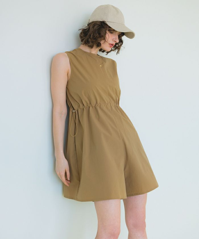 ・ハリ感のある撥水素材のノースリーブロンパースラッシュガード。