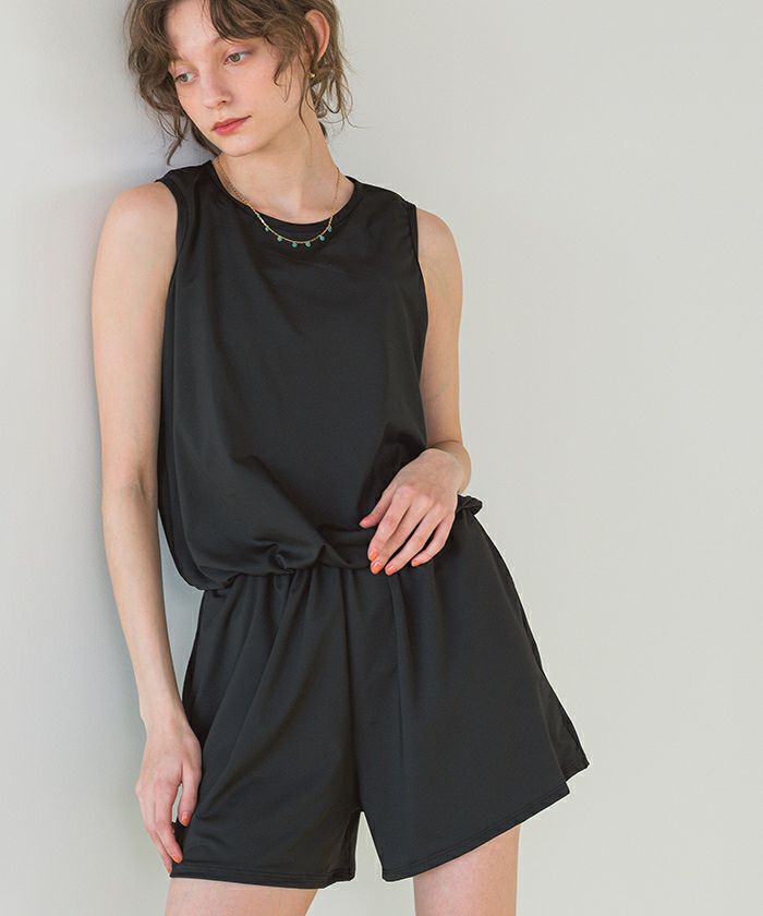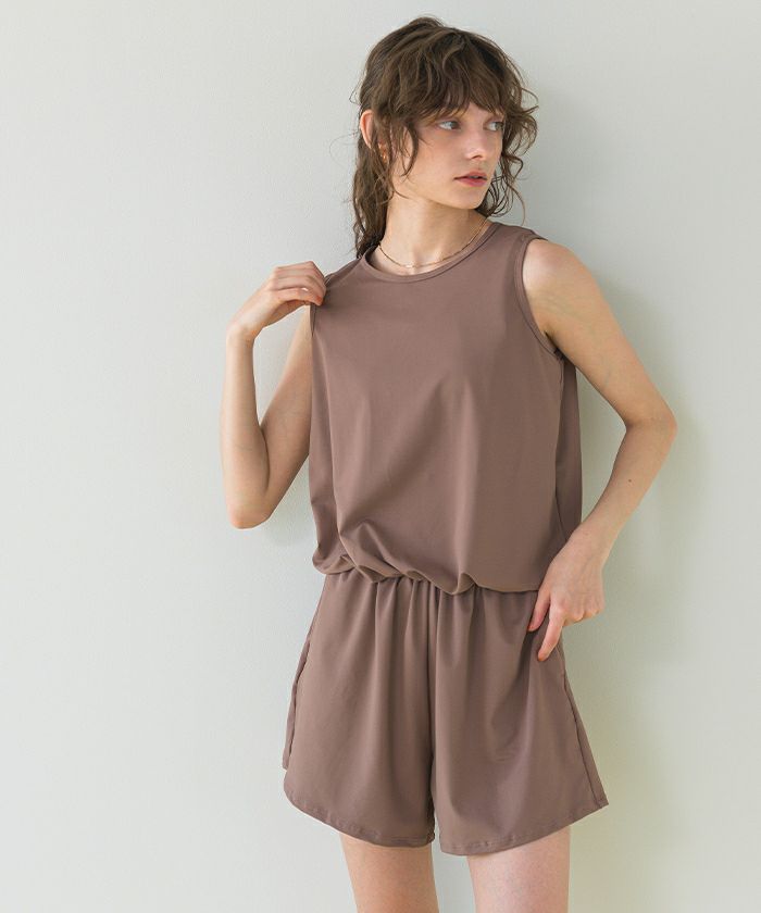 ・ウエストブラウジング×ワイドショートパンツデザインでスタイルアップ◎