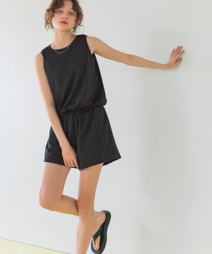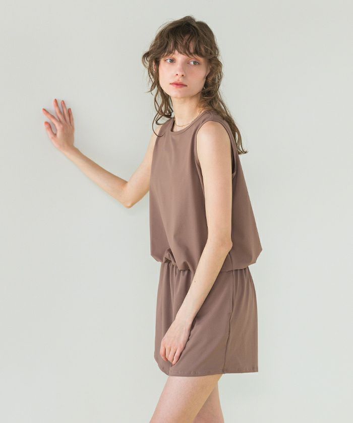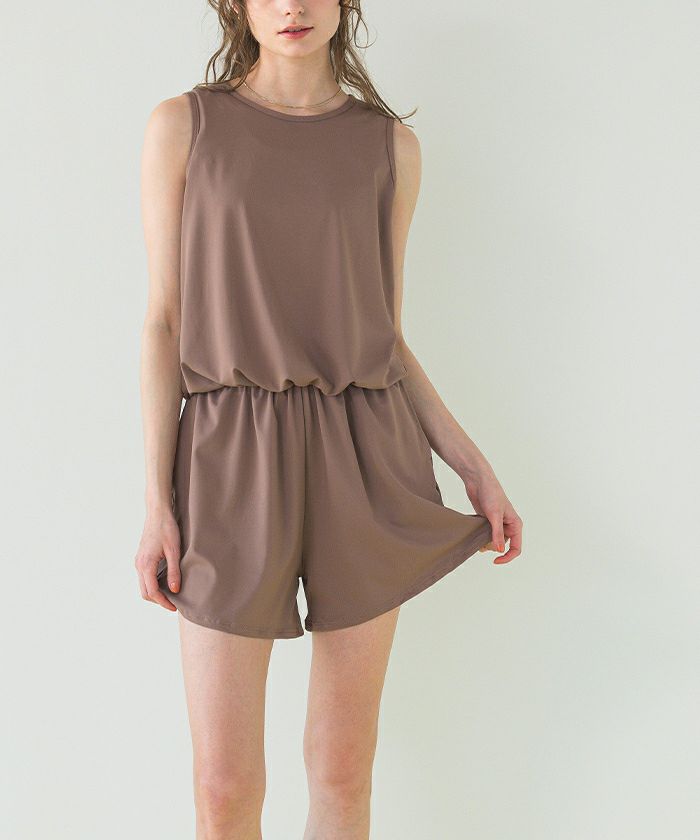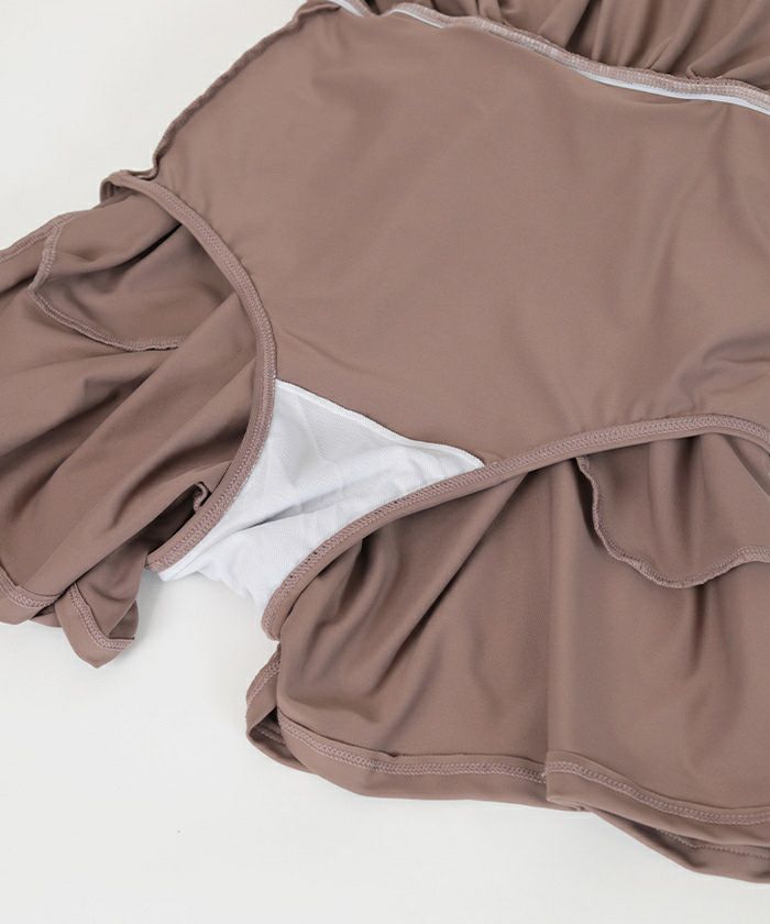 ・ワンピースの下にブラショーツが入っているロンパース水着。