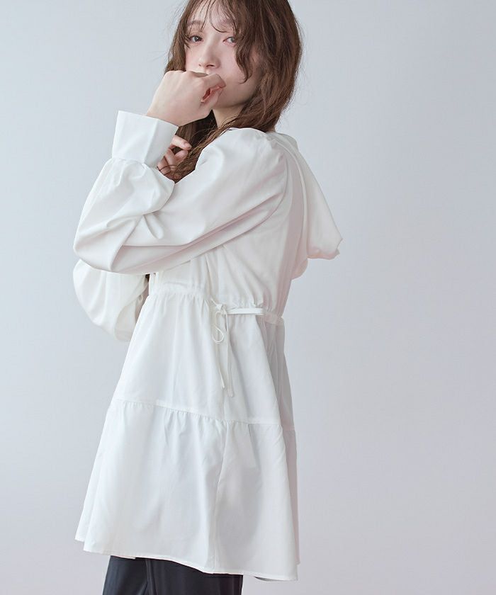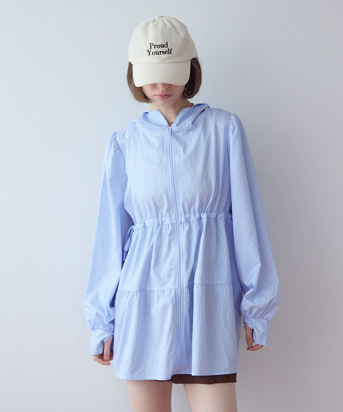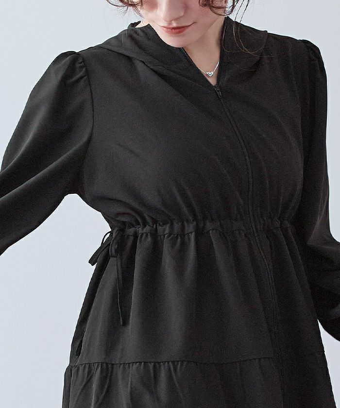 ・ティアードシルエットが可愛らしいフード付きジップパーカーラッシュガード。