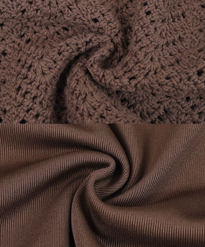 ・クロシェ編みのホルターネックトップスがセットになった3点水着。