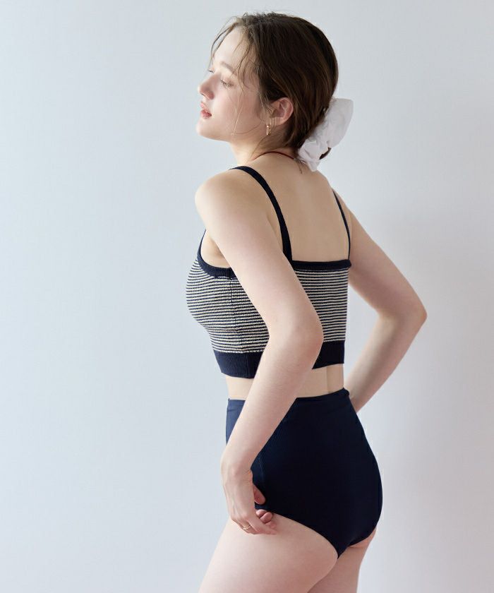 ・Vネックのシンプルなニットトップスが大人可愛いビキニ。