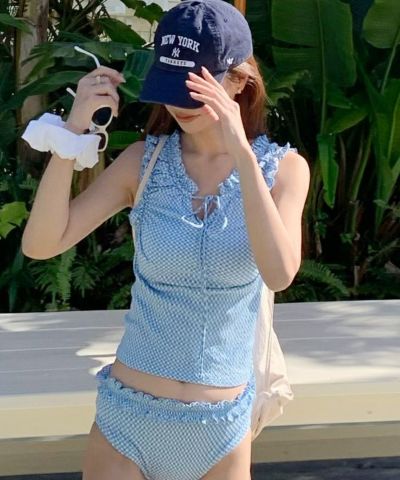 チェック柄フリルタンクトップビキニ/水着