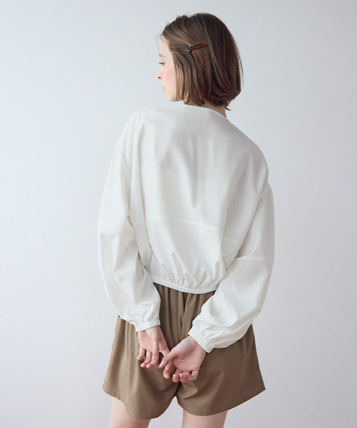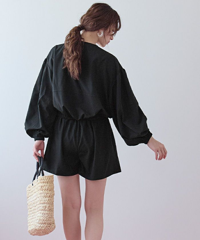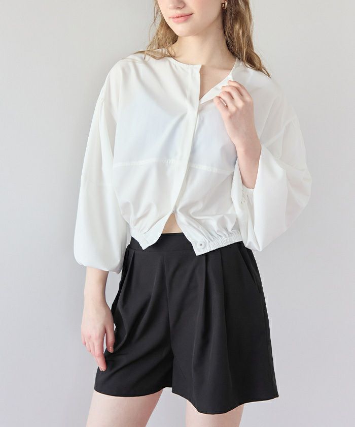 ・2点セットでコーデが完成する、ノーカラーのボリュームブルゾン×ショートパンツ。