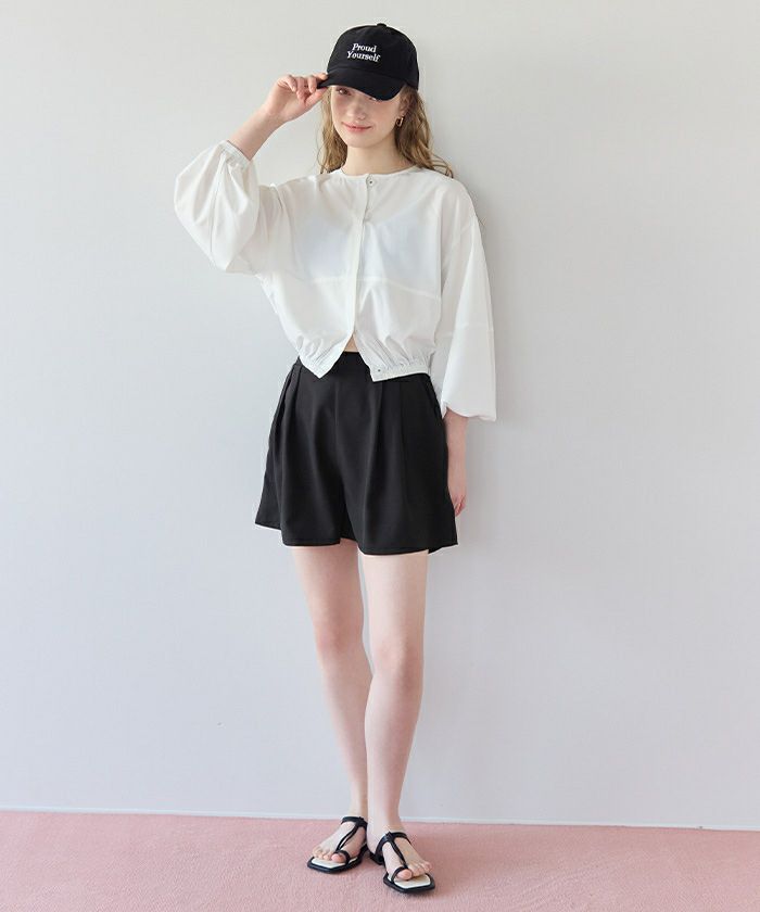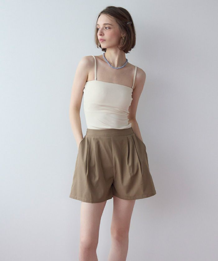 ・ショートパンツはタック入りで脚まわりがきれいに見えるシルエットに。