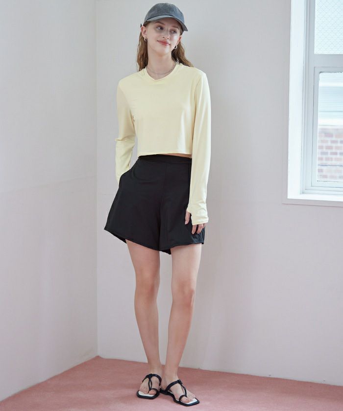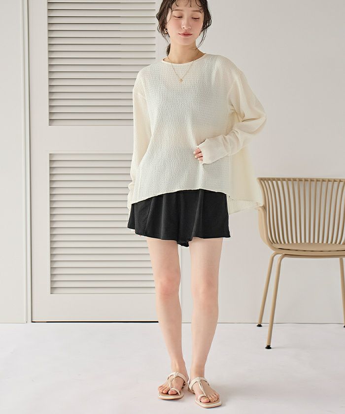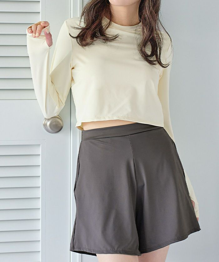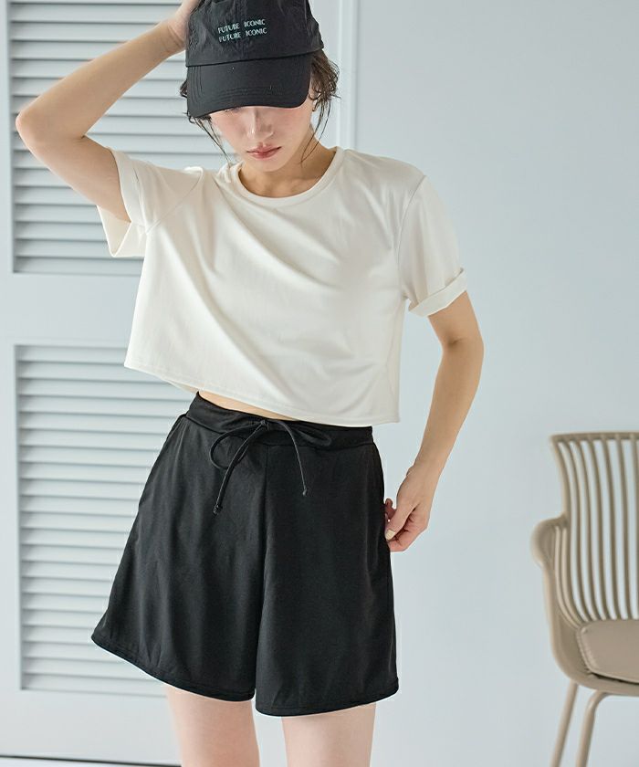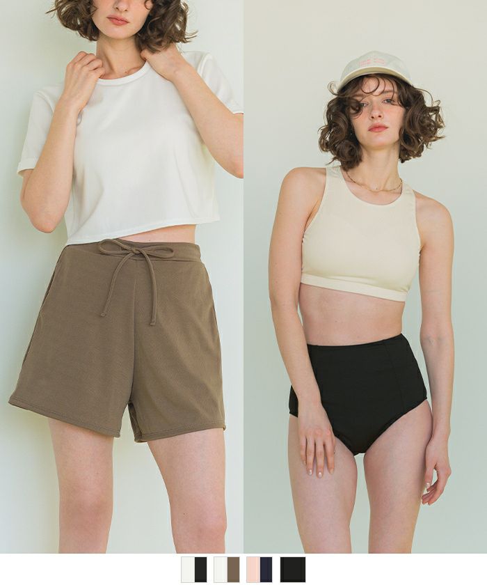 他の画像を見る 【2025S/S】【ストレート】【ウェーブ】【ナチュラル】【made in japan】【UPF50+】 ウエストギャザーサスティナブルショートパンツ/水着 価格 ¥ 6,589 税込 お気に入りに登録する