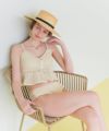 ・クロシェ編みの透け感が大人可愛いペプラムフレアビスチェビキニ。