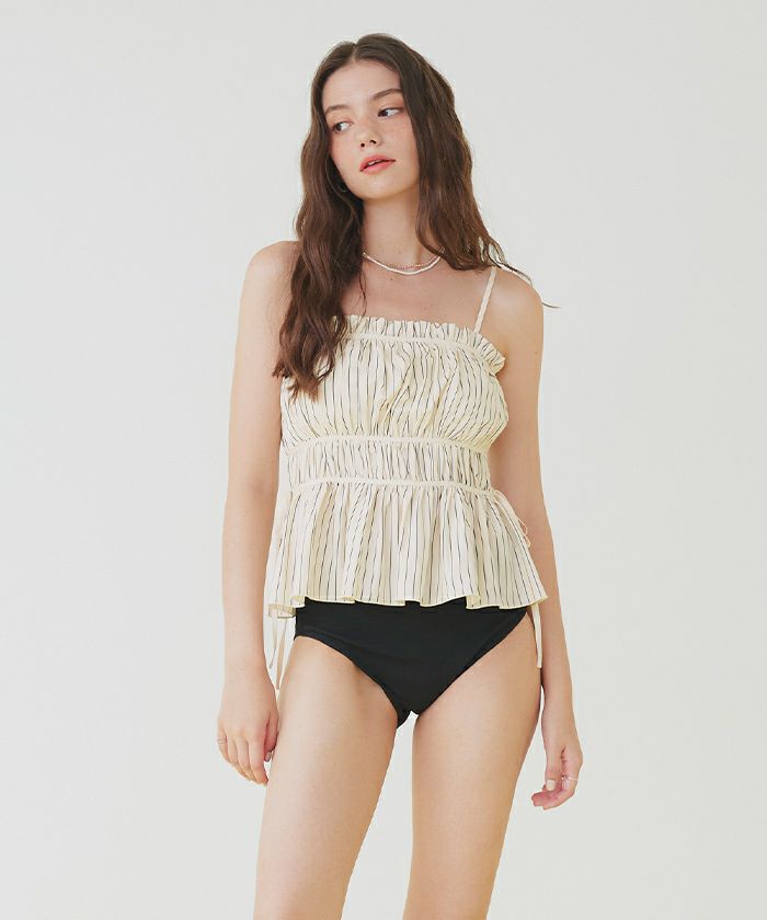 着脱しやすいゴム仕様のブラは、カップ付きトップスとしてデイリーのコーディネートにも使える万能アイテム。