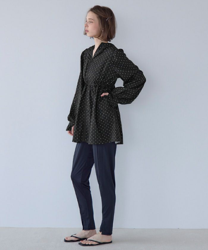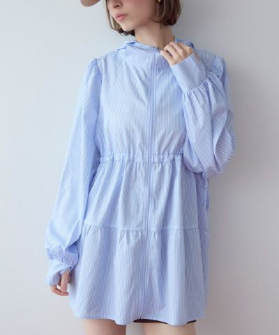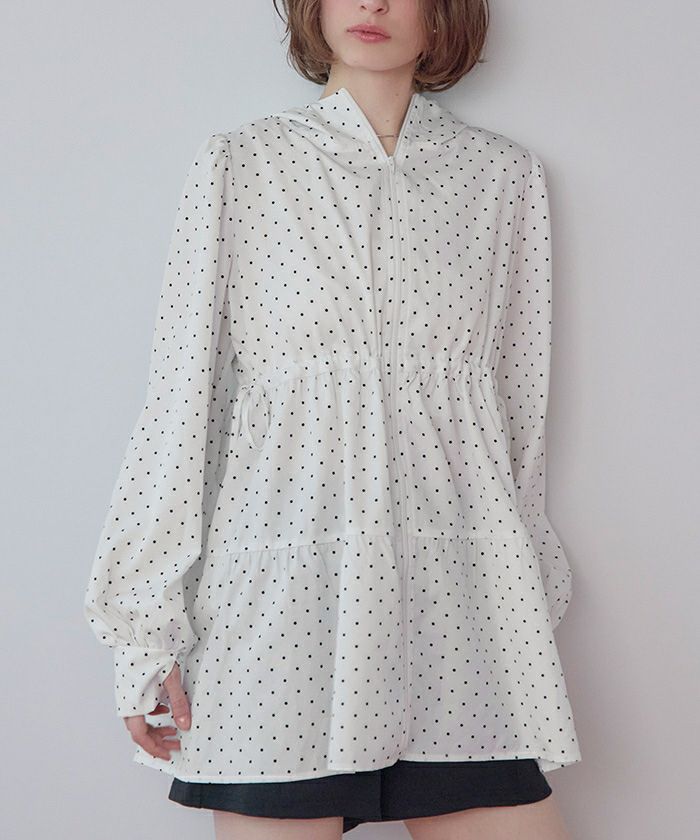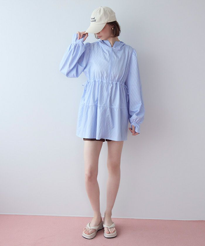 ・ティアードシルエットが可愛らしいフード付きジップパーカーラッシュガード。