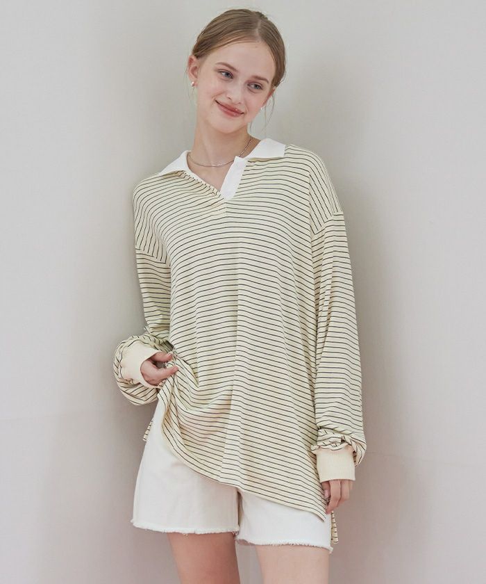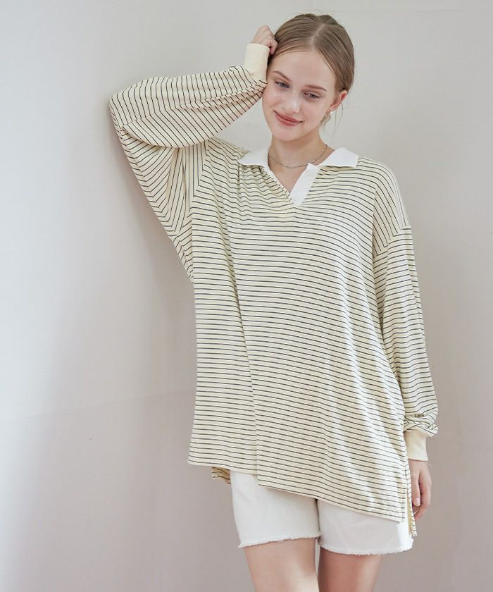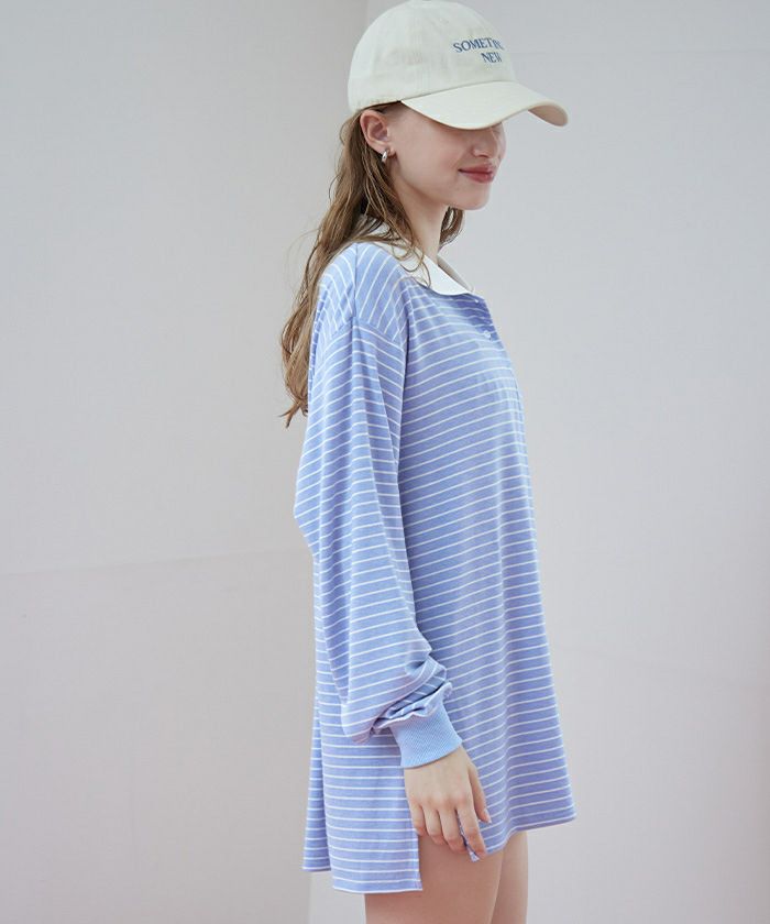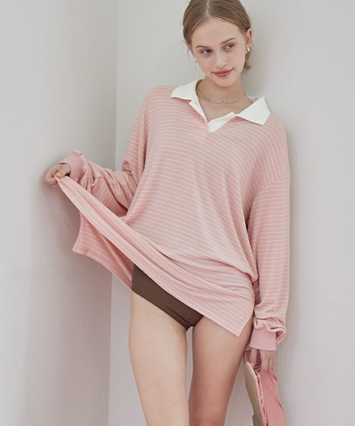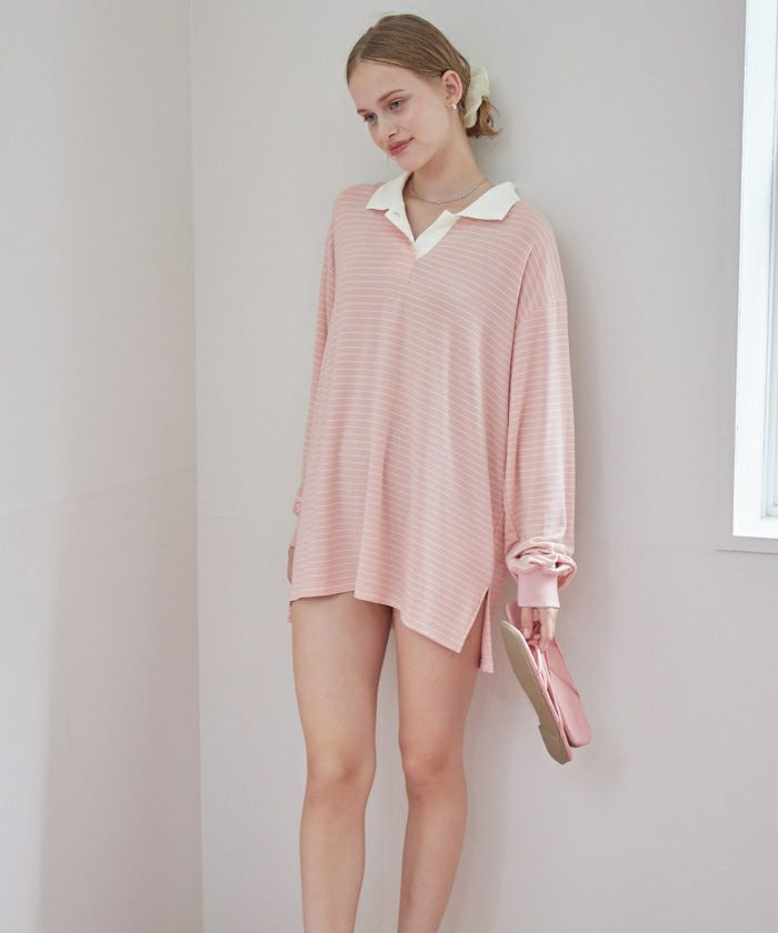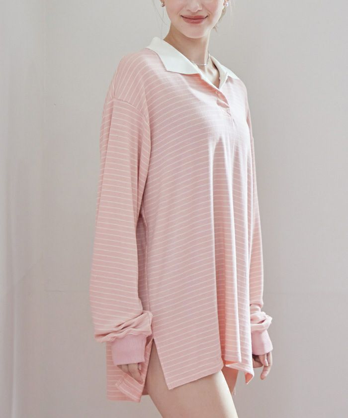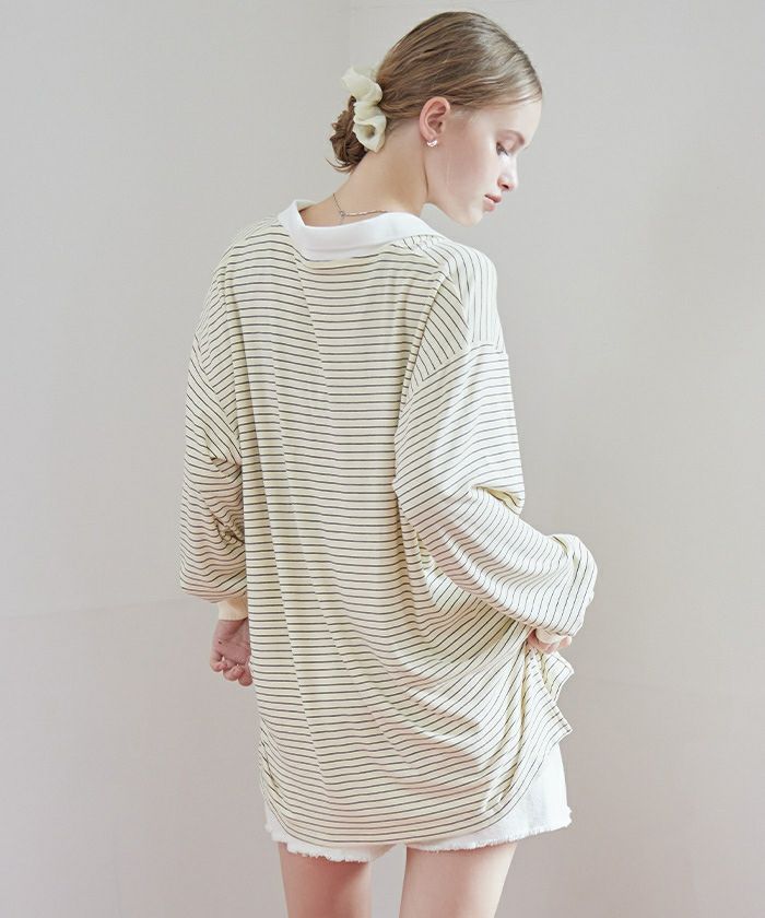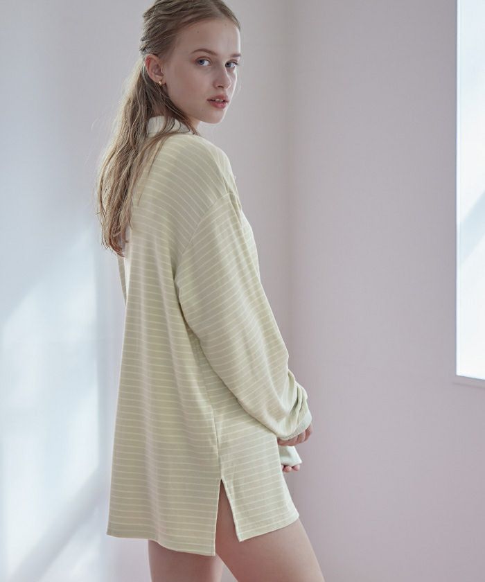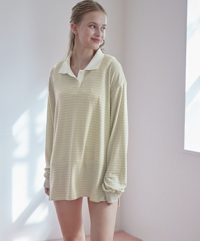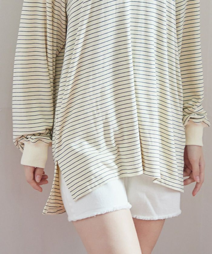 細ボーダーオーバーラガーシャツ/ラッシュガード