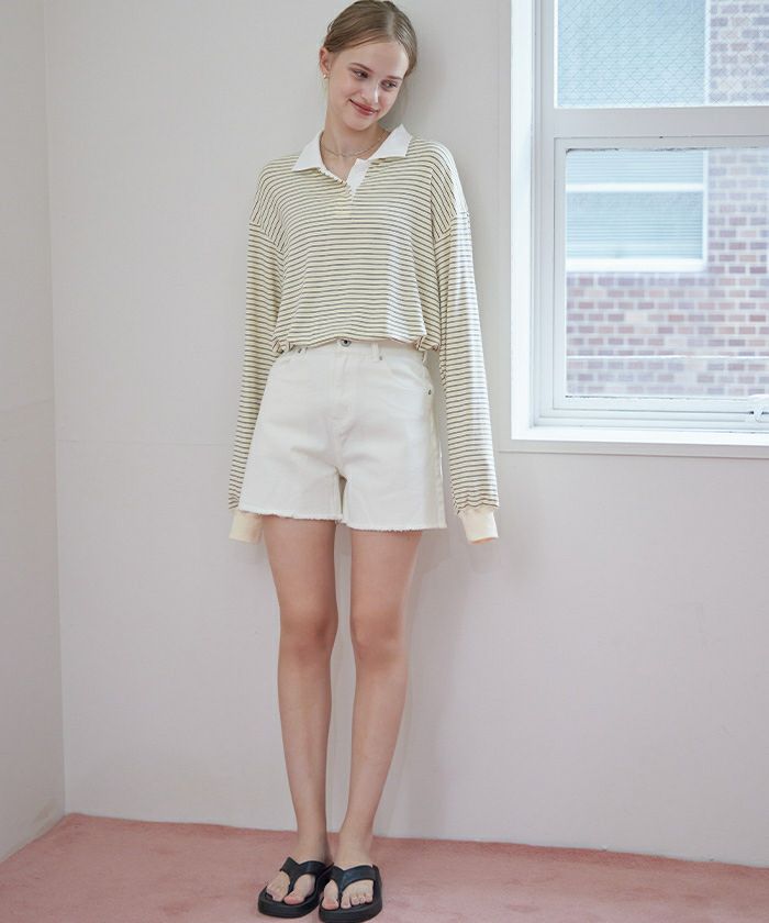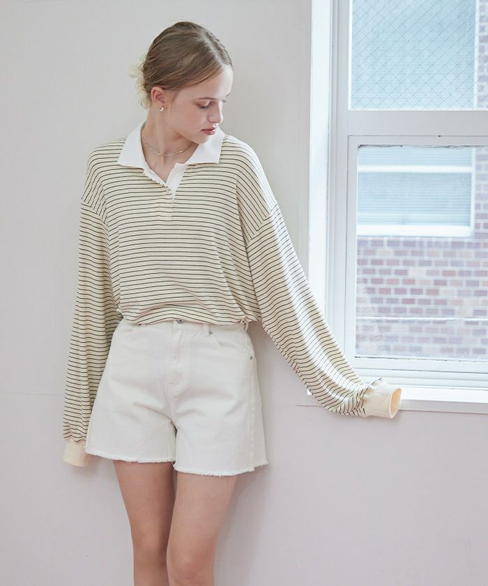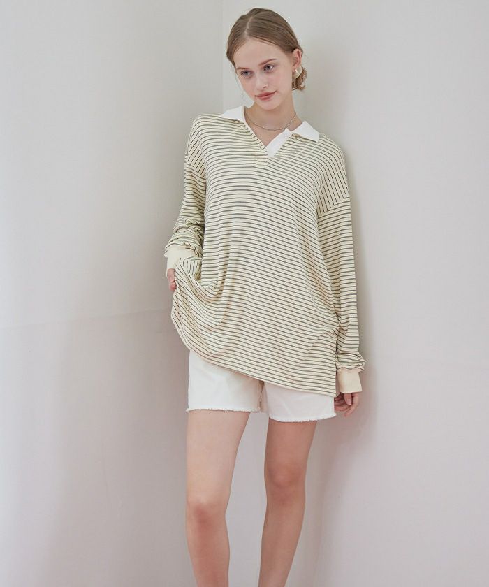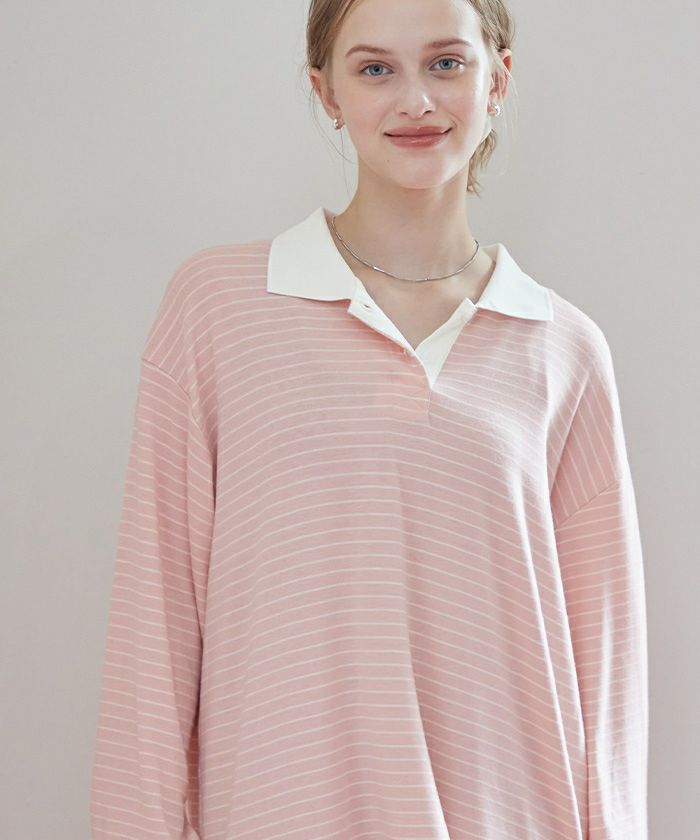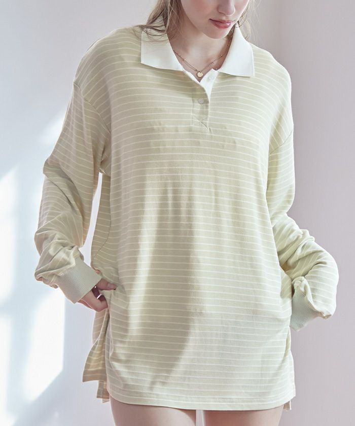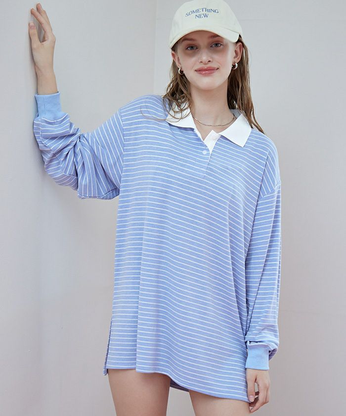 ・スポーティーなラガーシャツですが淡いカラー展開でスタイリングの幅も広がります。