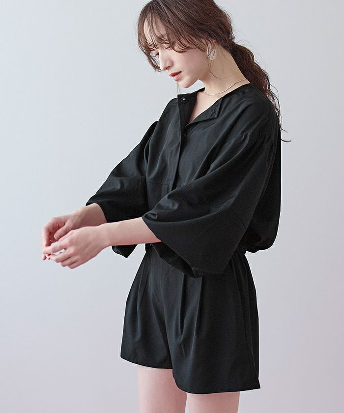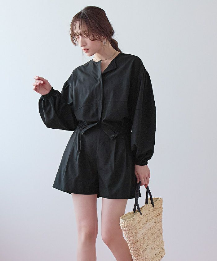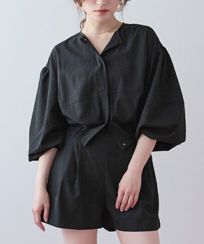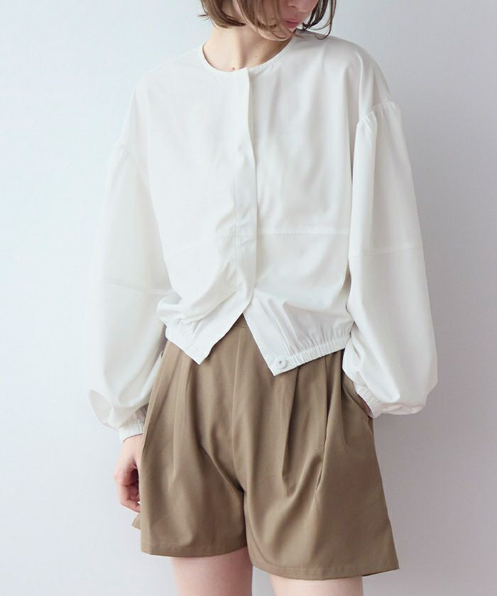・2点セットでコーデが完成する、ノーカラーのボリュームブルゾン×ショートパンツ。