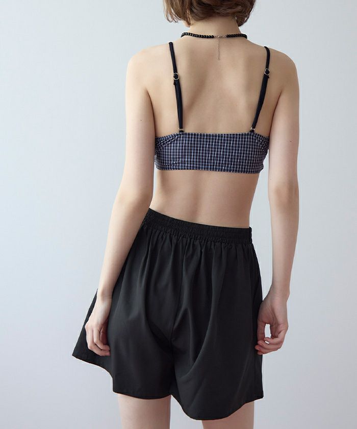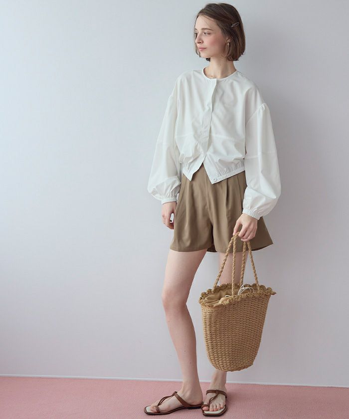 ・ショートパンツはタック入りで脚まわりがきれいに見えるシルエットに。